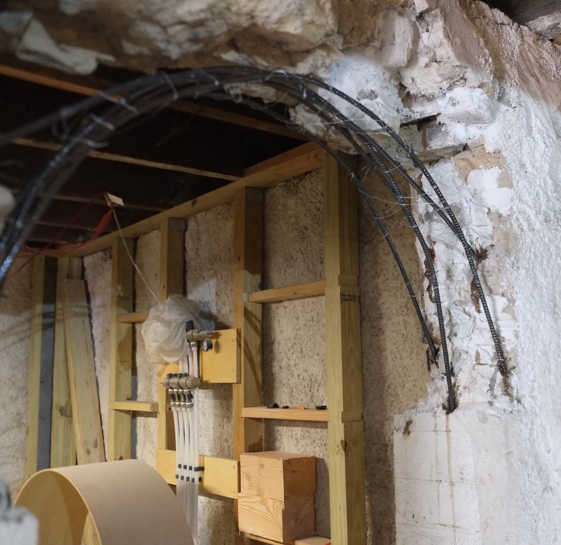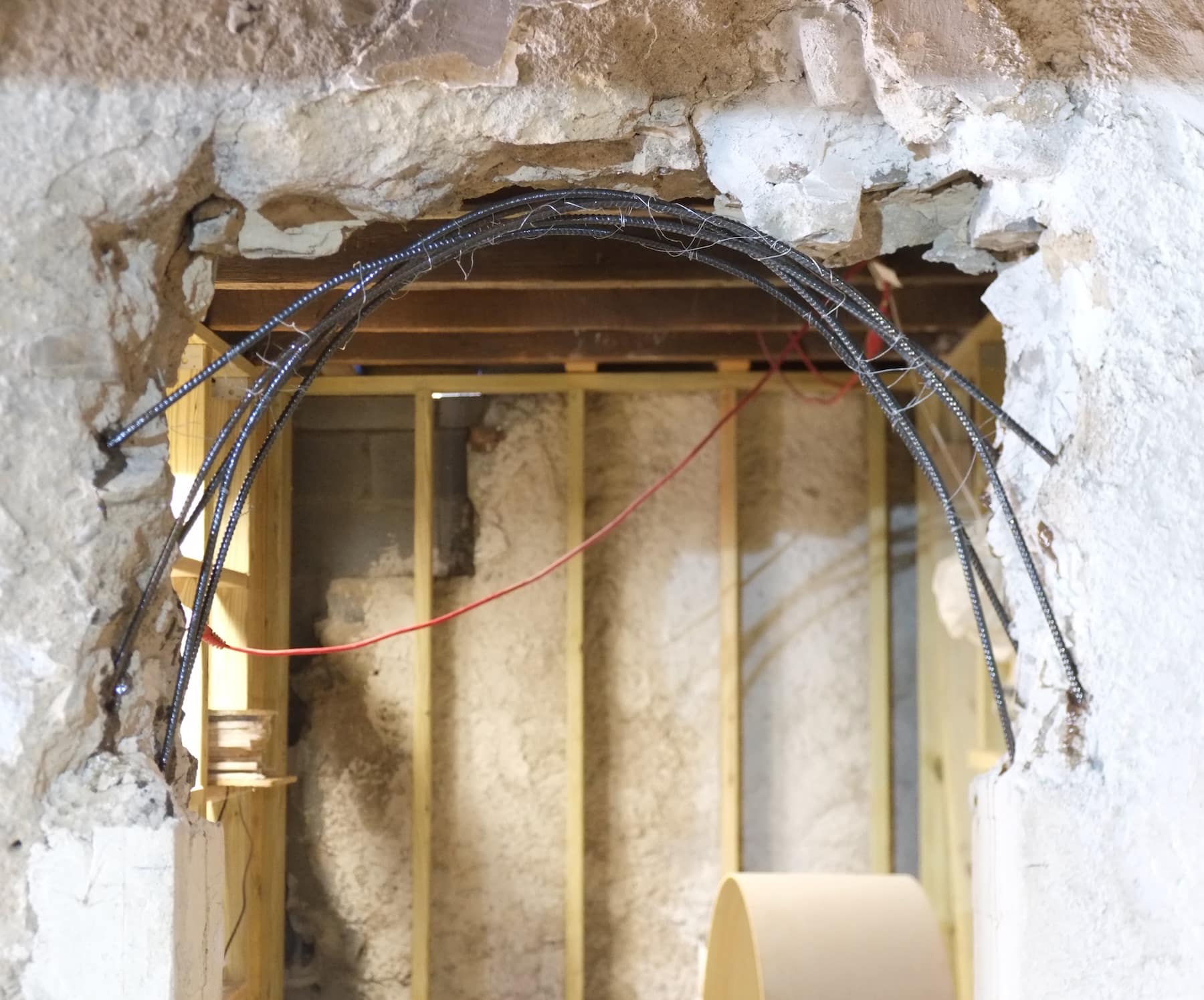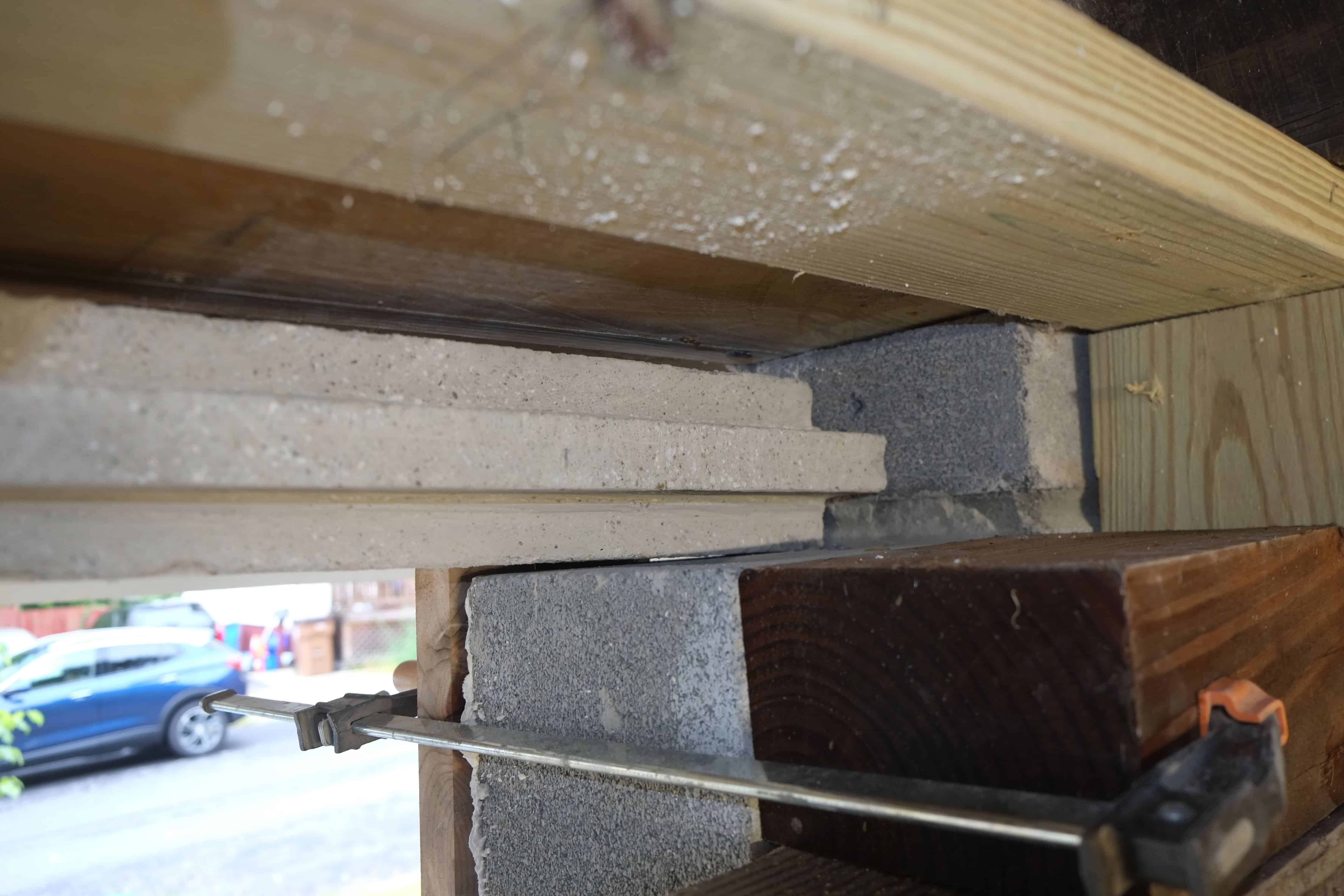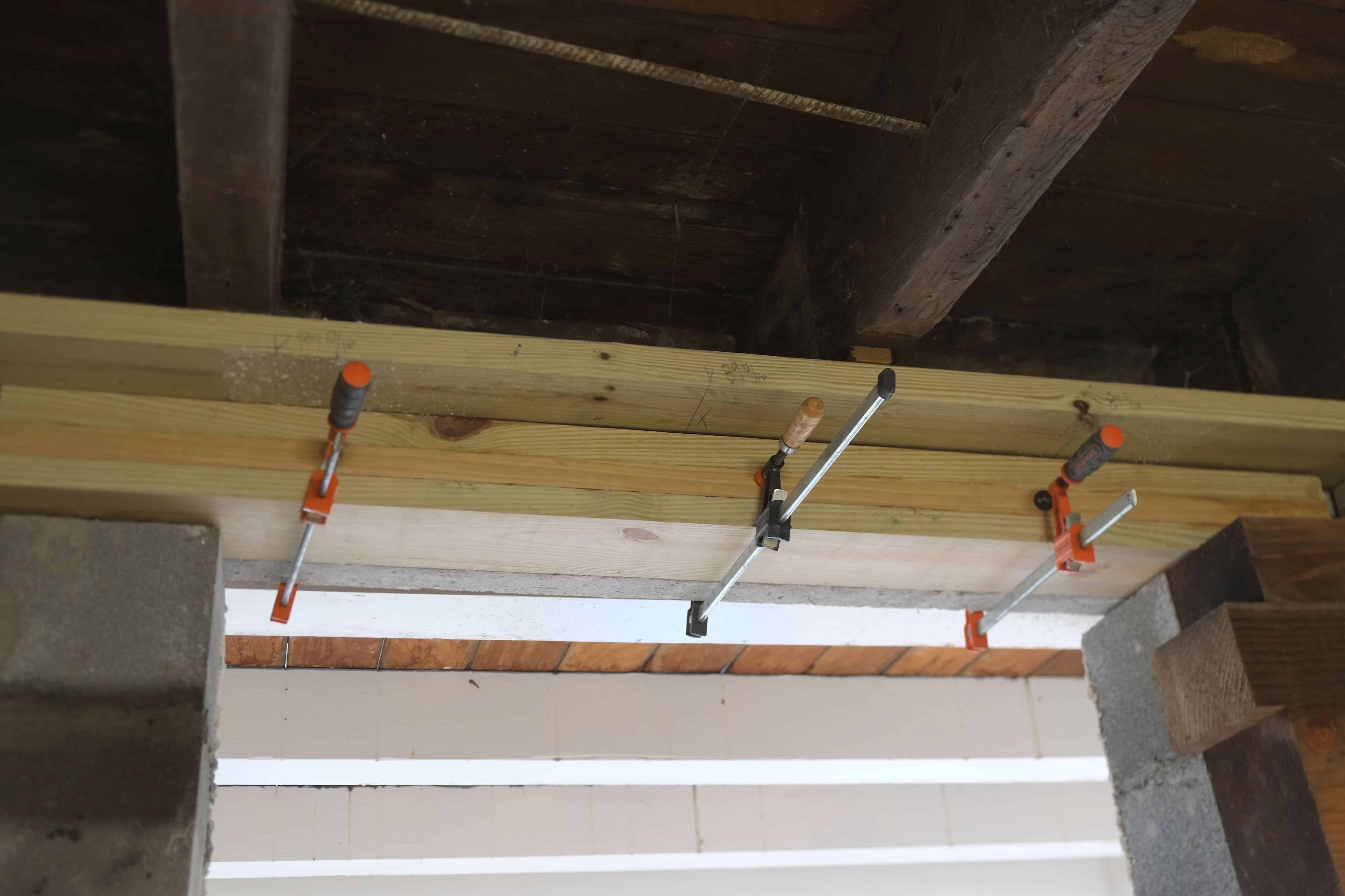 Regarding the lintel, I couldn’t find the right size locally, so I made one myself. To ensure I could lift it, the inner side was pressure-treated wood, and the outer side was concrete, reinforced with rebar. That said, it was still too heavy to install safely from the top of a step-ladder.