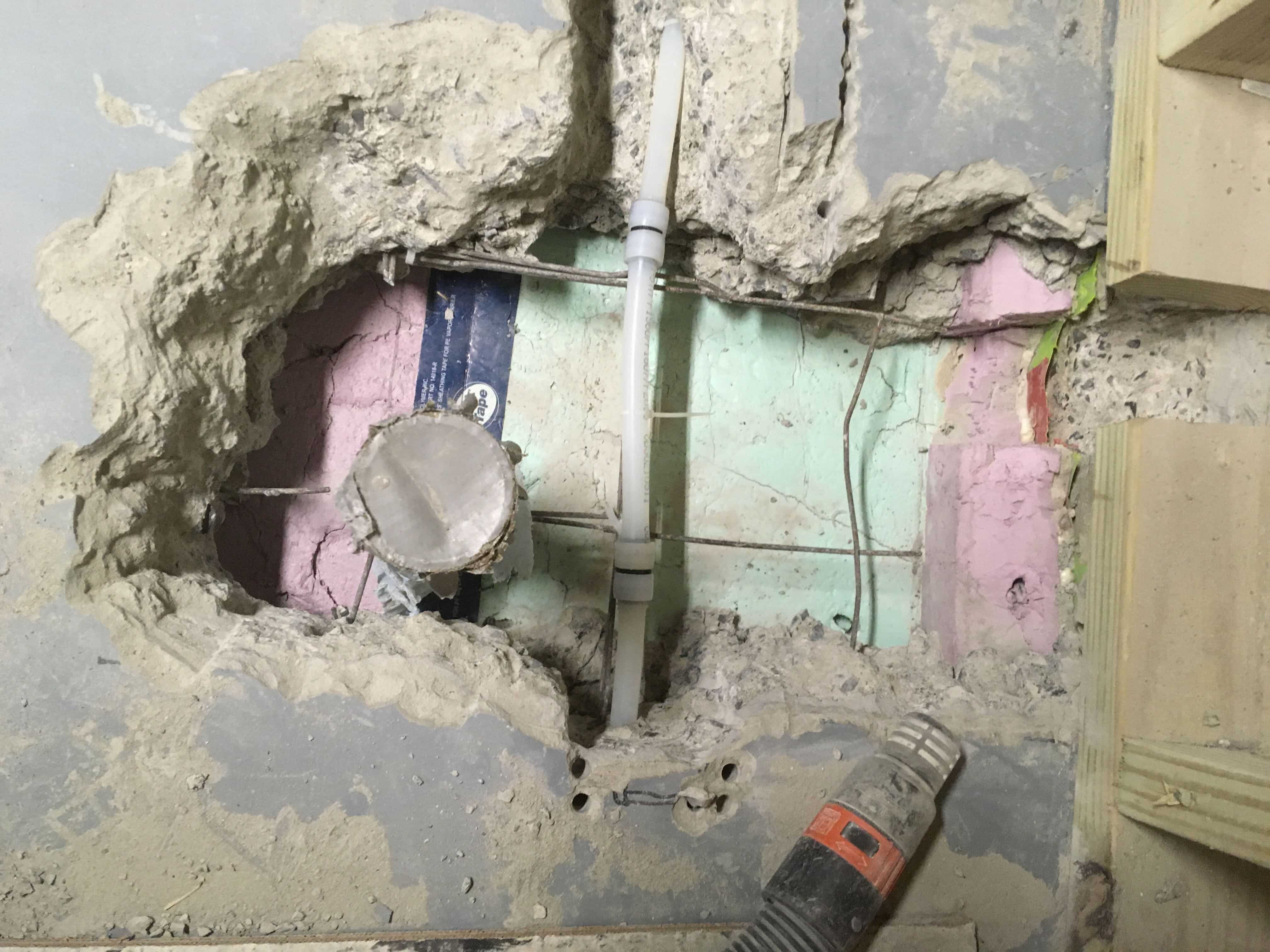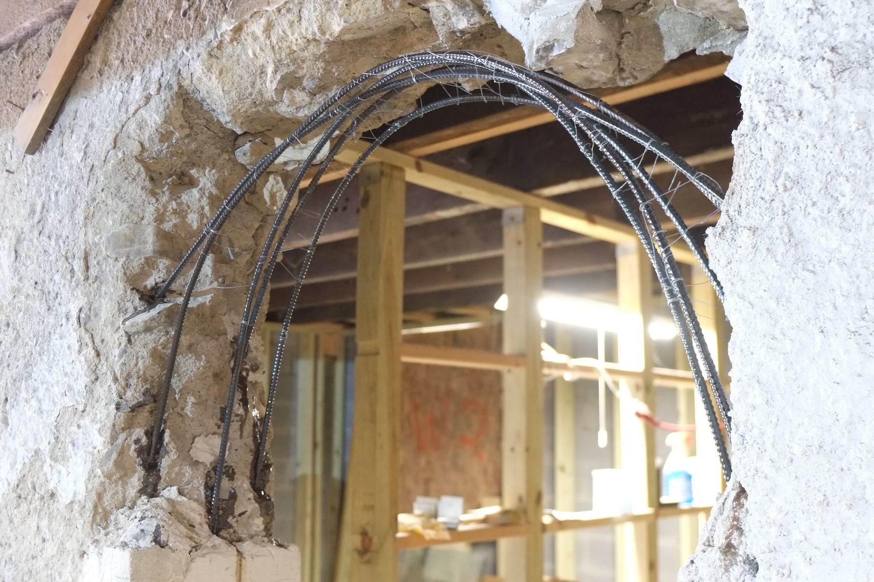 To narrow the gap, I used 8″ square concrete blocks, tied into the existing wall with thick galvanised wire and filled internally with concrete and rebar. My brick-laying skills are poor, but after a light pass of the grinder it was perfect! The new width is now comparable to that of the other windows. I intentionally left a gap above the blocks to install a lintel, as the window couldn’t go that high.