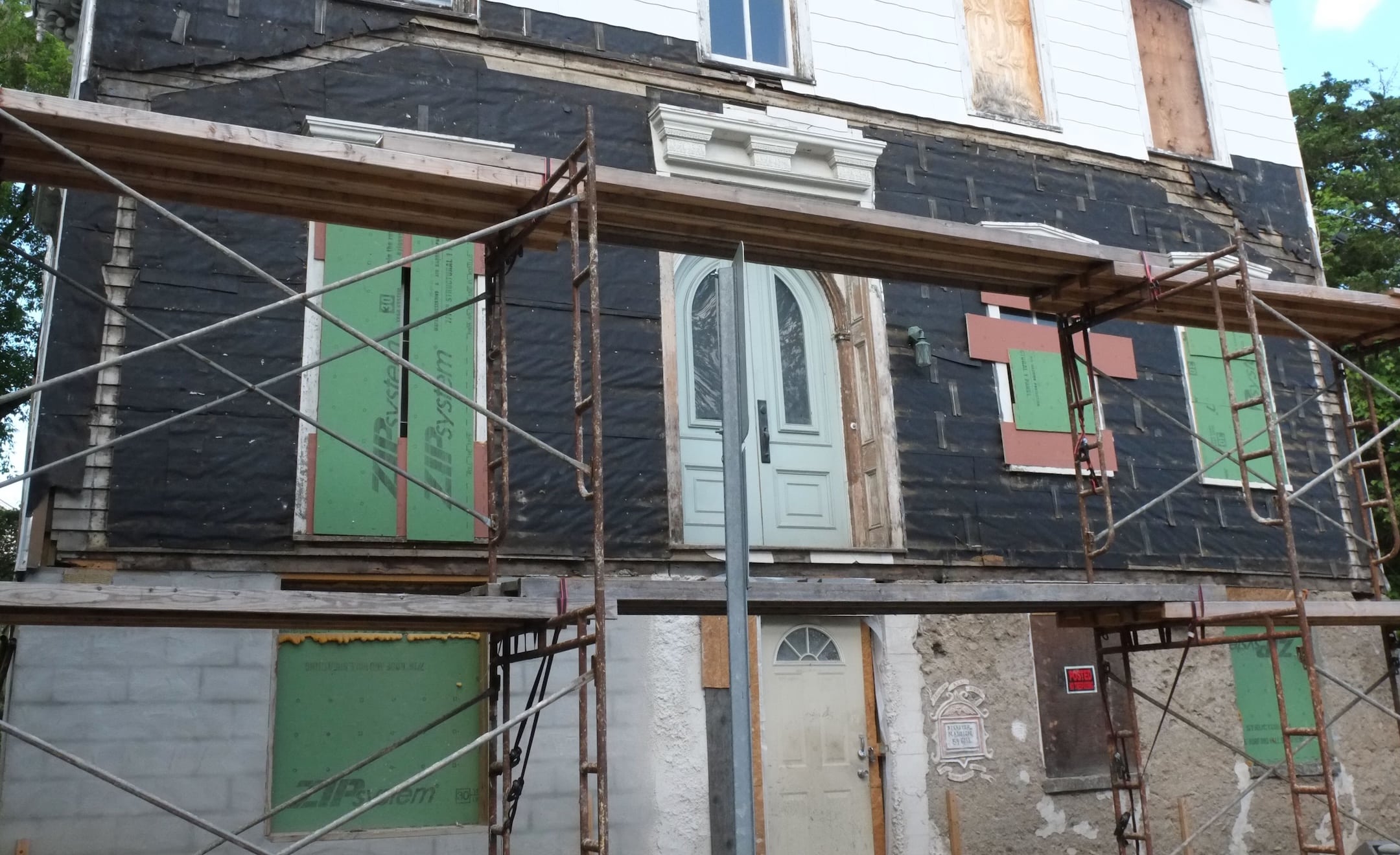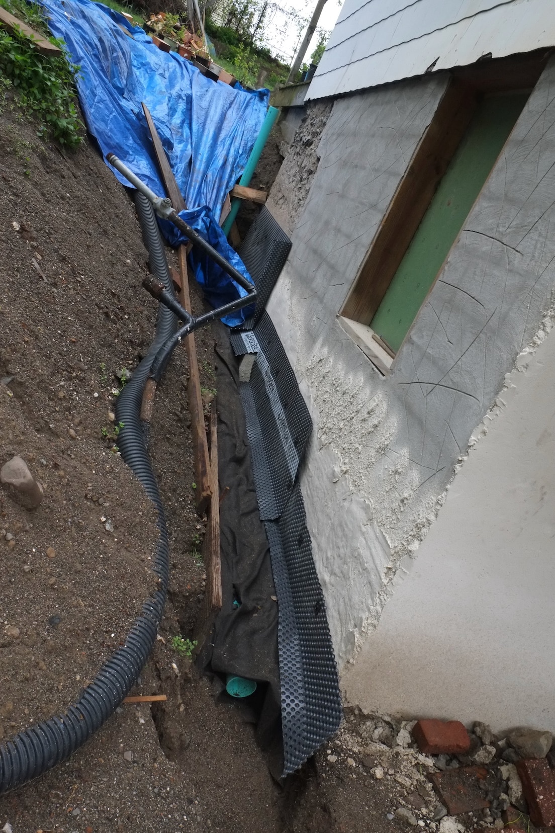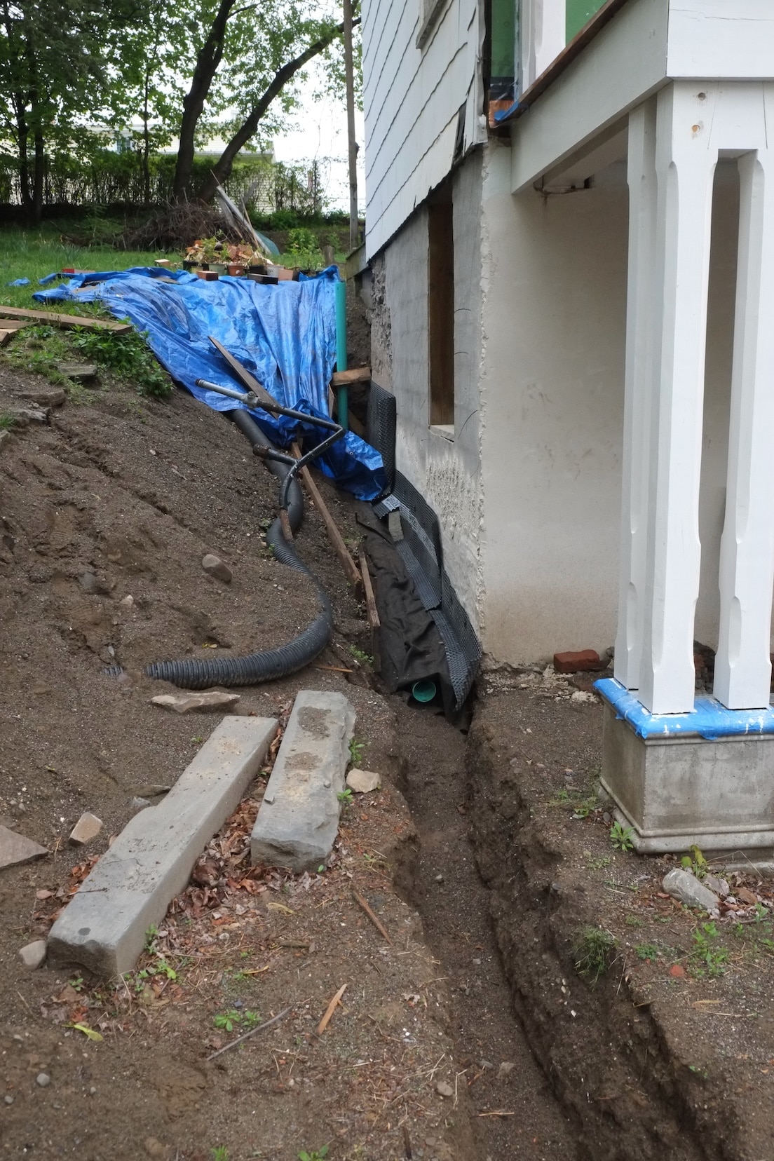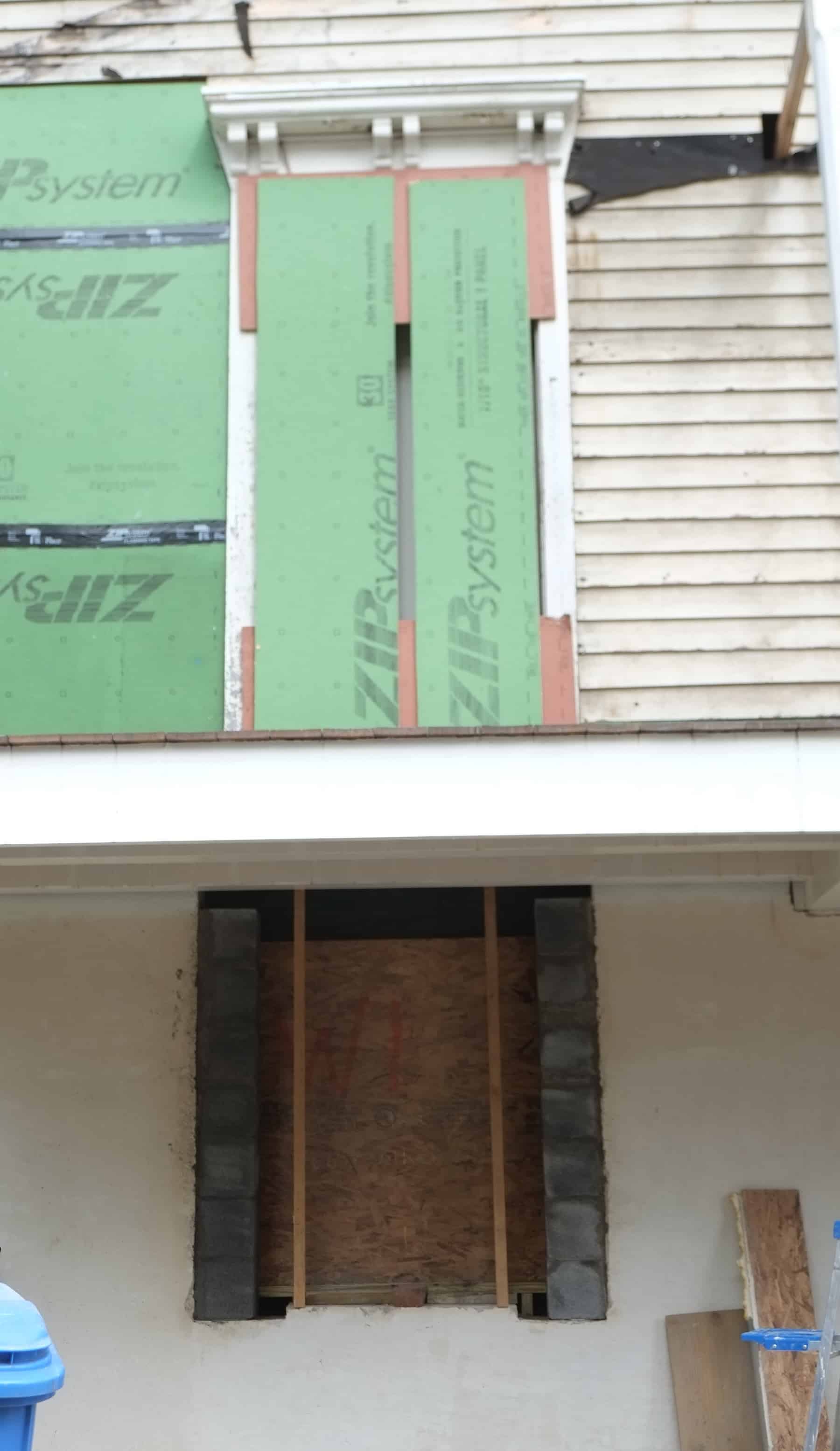 For some reason, when they built the new concrete block wall on the left side of the house, they left a window gap of about 5′ wide, which would be a huge window and not in proportion to the rest of our windows. I’ve probably got better pictures somewhere, but these are the best I can currently find.