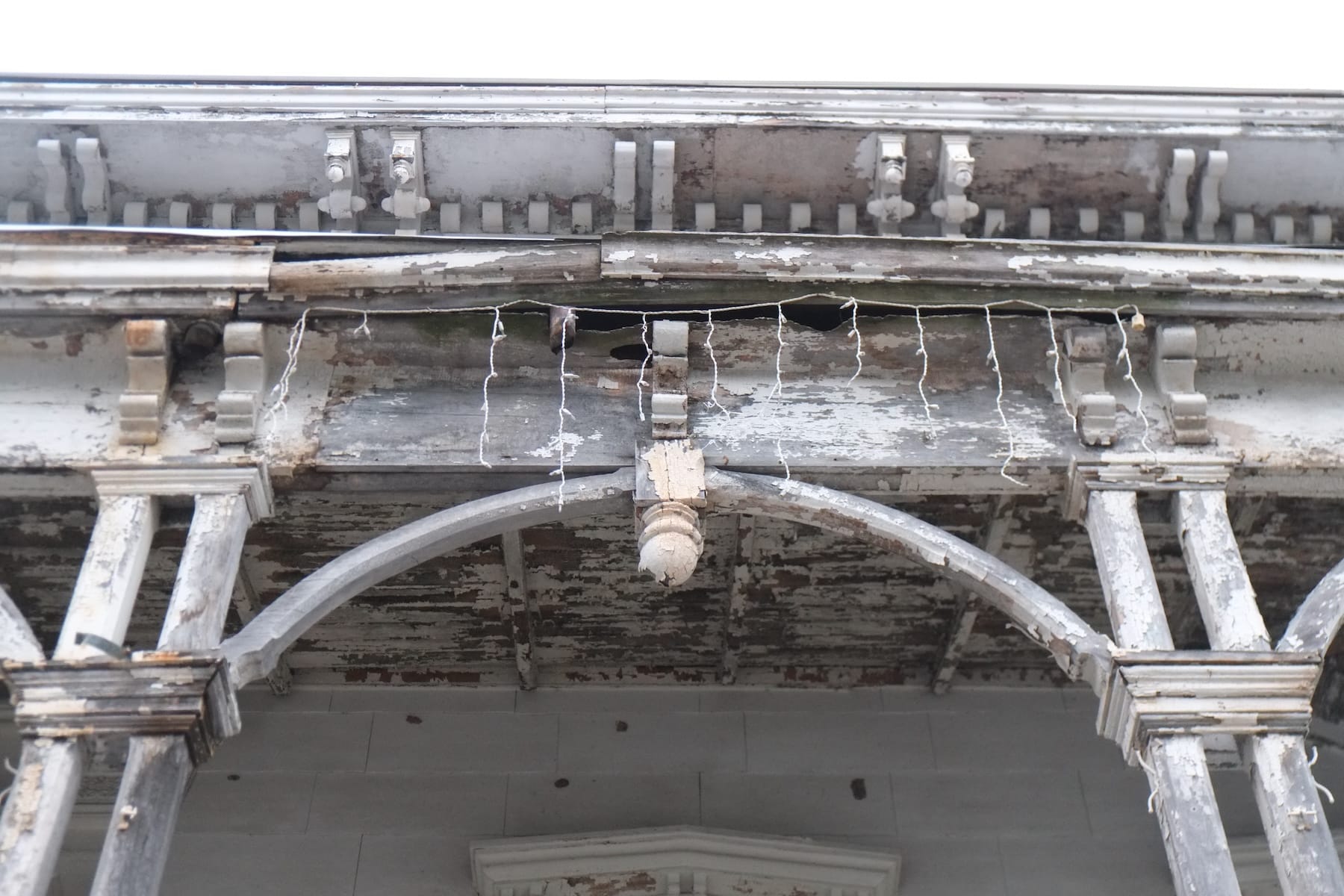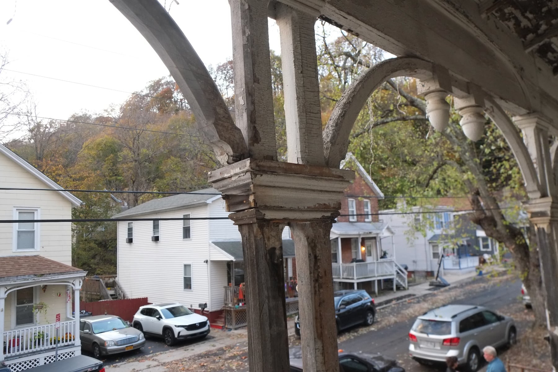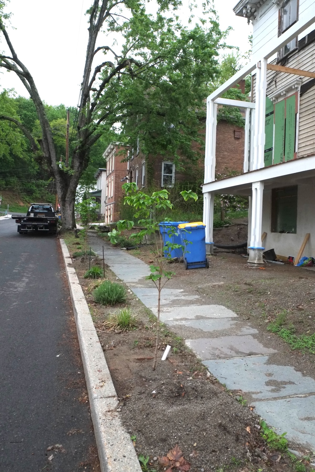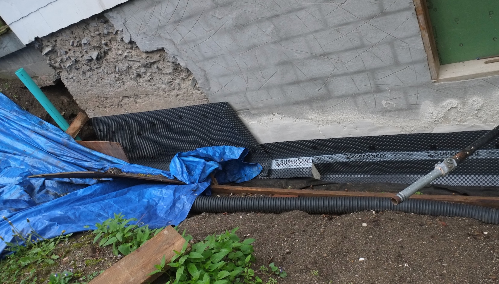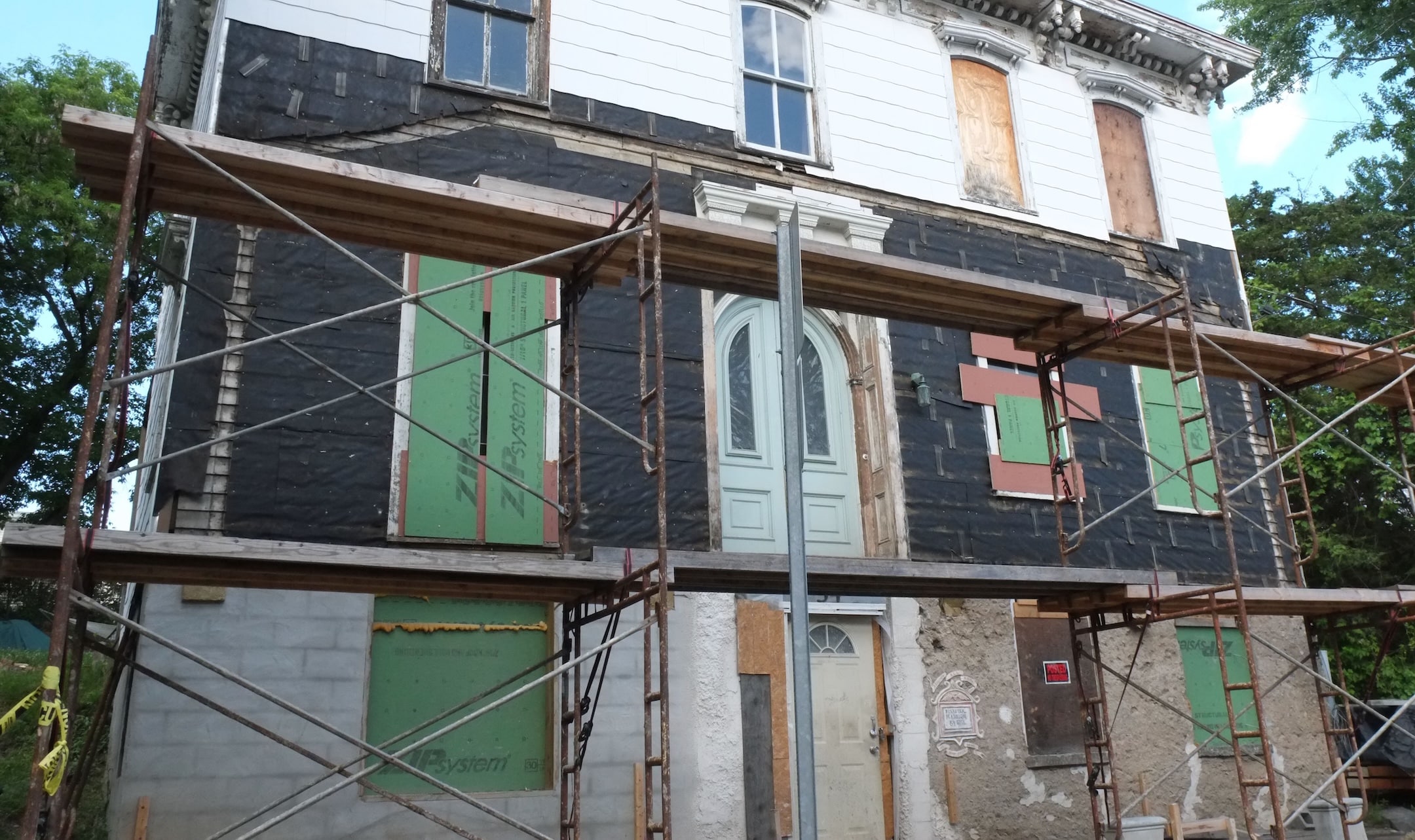 For some reason, when they built the new concrete block wall on the left side of the house, they left a window gap of about 5′ wide, which would be a huge window and not in proportion to the rest of our windows. I’ve probably got better pictures somewhere, but these are the best I can currently find.