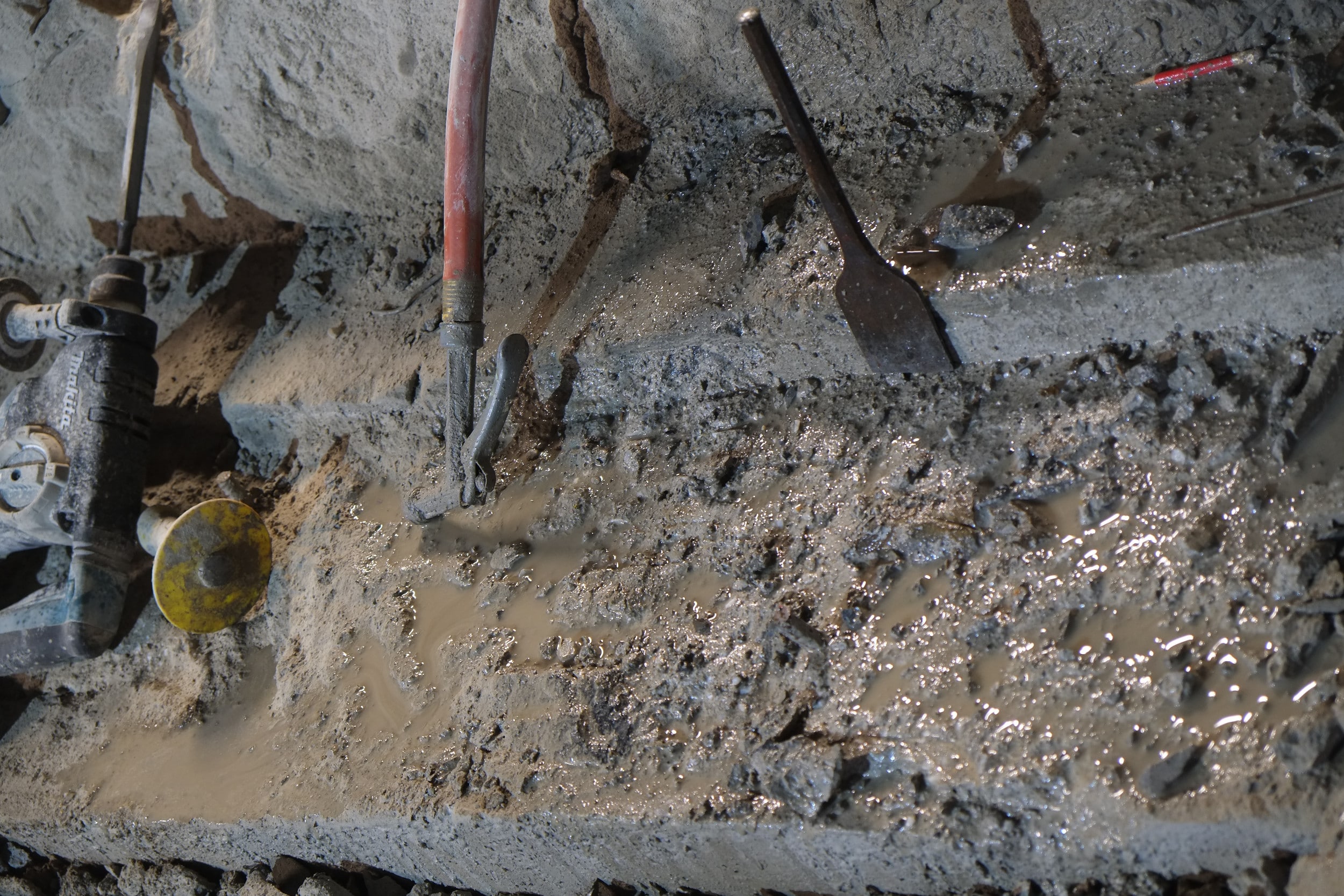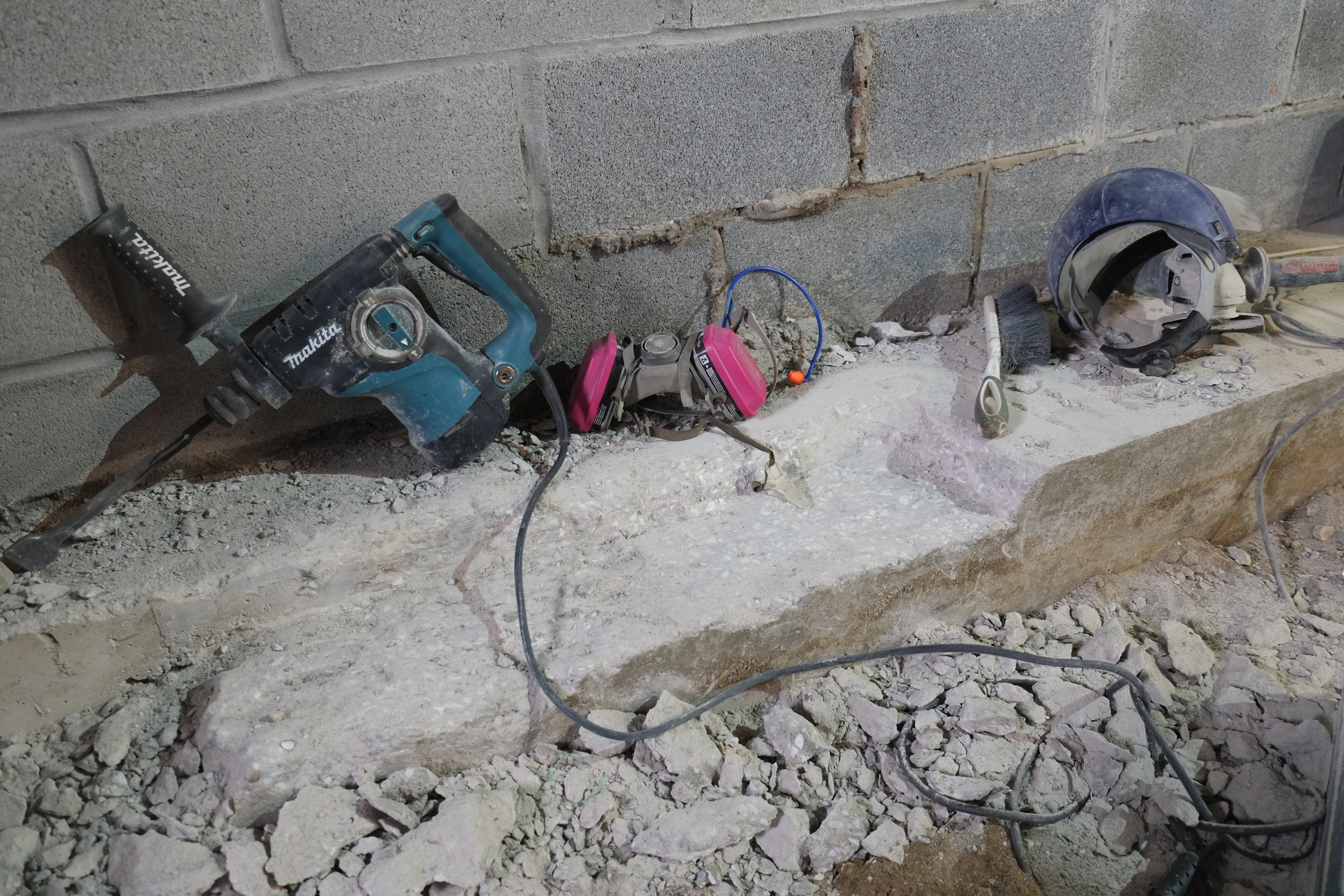 One good thing about this new pour is that we’re gaining 4 – 5″ of extra height in the basement. The ceilings will still be a little low but not as low as they used to be. To achieve this we did had to cut some of our footings down by a few inches which wasn’t an easy job and required a diamond cutting blade on my grinder and a hammer drill. That job probably took another few weekends and evenings, annoying as I added this extra concrete in the first place!! The footings still go down another 14″ so not loss of strength.