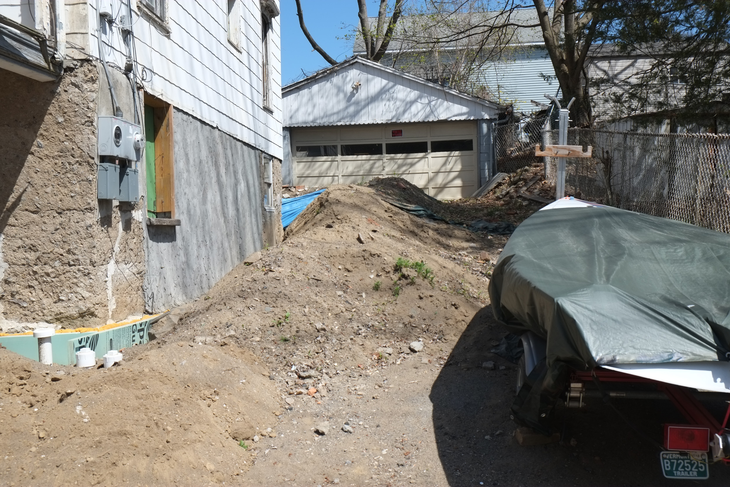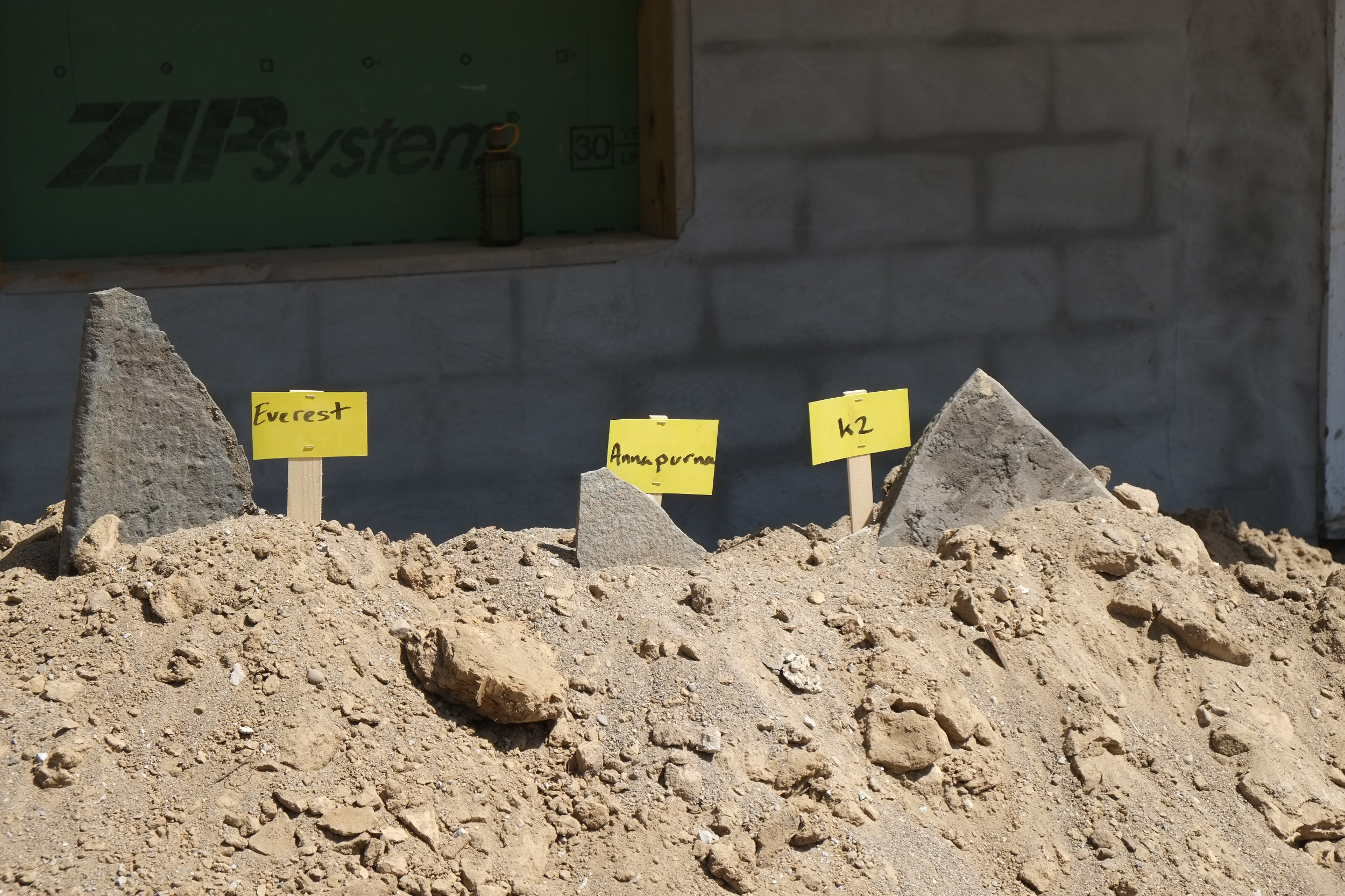 We’re getting close to getting a basement pour and to save some money we are excavating it ourselves. On average we’ve removed about 8″ deep of soil which will allow for 5″ of gravel, 2″ of insulating foam and 4″ of concrete. It will have probably taken us about 16 hours in total to remove this dirt, spread over a weekend and a few evenings, hard work but we take lots of rests, plus the dirts is basically sand. Main problem is where to put the dirt and the front of our house is starting to look like a scale model of the Himalayas. The dirt isn’t going back into the house, so what to do with it? Feel free to help yourself.