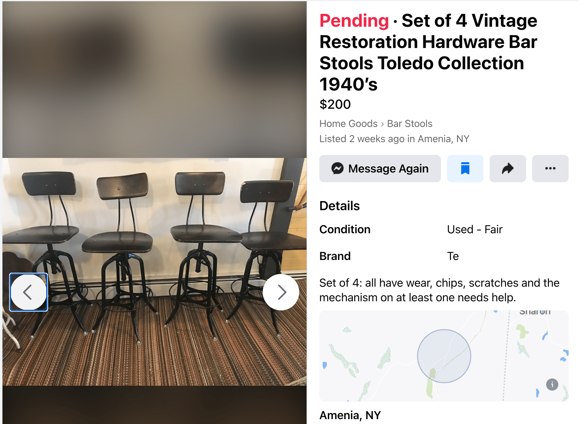 The best deal I came across were these. They did look a bit beat up with scratches, chips, a broken lift mechanism and the backs looked bent. I offered the seller $160 which was accepted and we went to pick them up last weekend, a 50 minute drive.