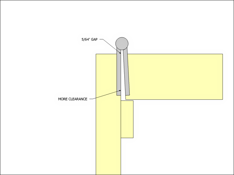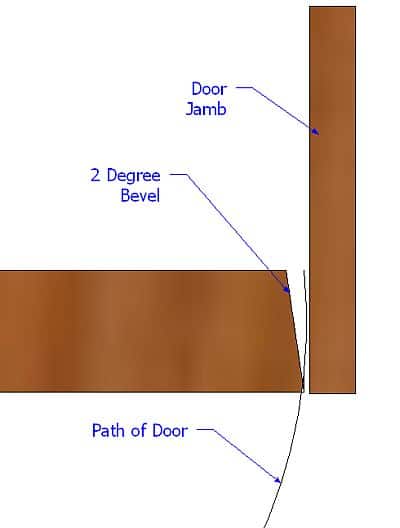 We’re almost at the point of painting the door and the last thing we have to do is to bevel both the lock and hinge sides of the door. The reason for beveling the lock side is to allow for a tighter fit of the door to the jamb when in the closed position and on the lock side it stops the hinges from banging into each other (called binding). Pictures below hopefully illustrate this.