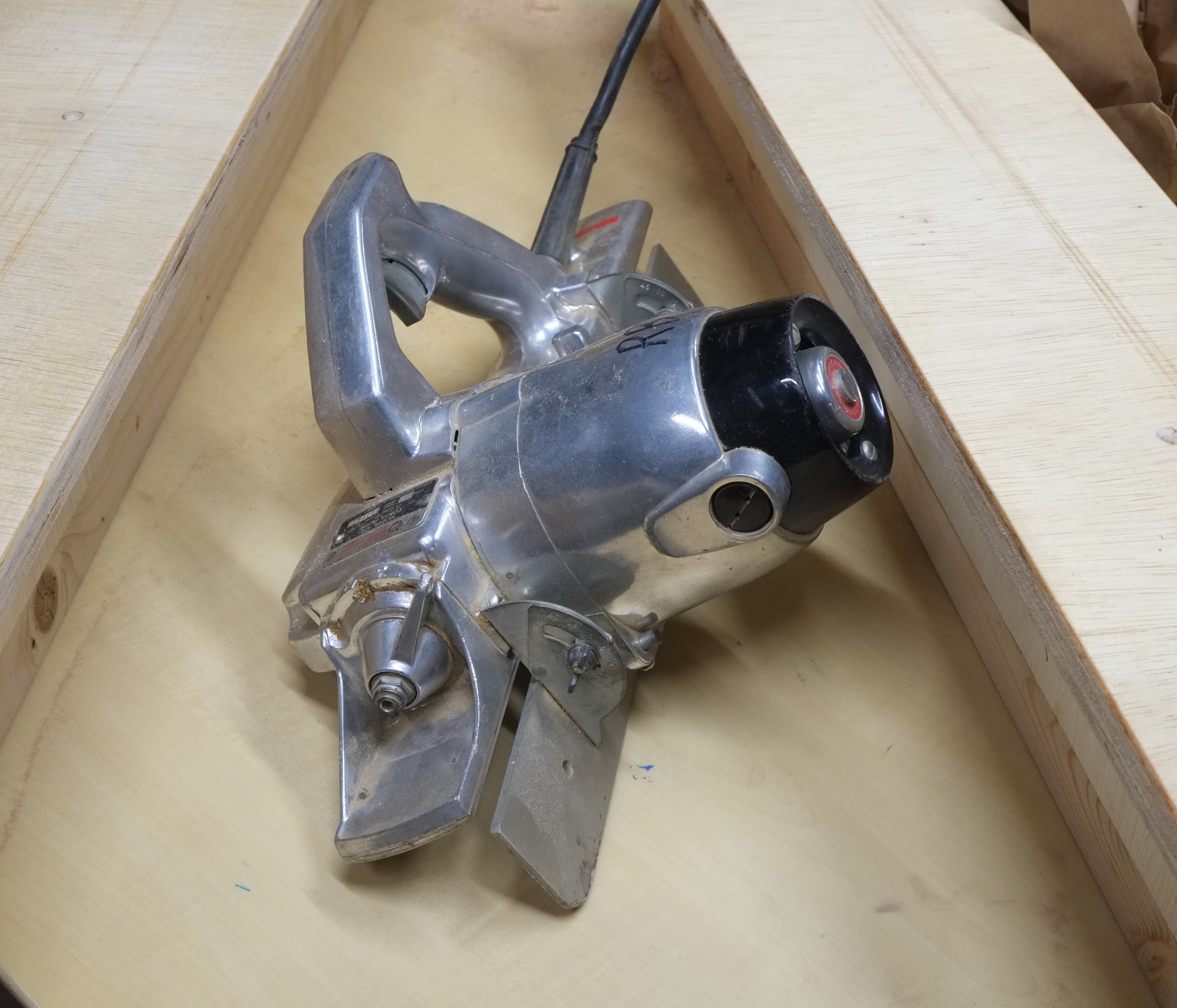 The only downside with this tool is that spare parts are no longer in production, especially the cutter head. The cutter heads do turn up on ebay every now and then but they sell for about $150. However, this tool has a trick up it’s sleeve – you can sharpen the blade yourself on site!!!! Notice the accessories? They’re the parts to sharpen the spiral cutting blade with the small round object being the grinding stone. Now who builds tools like this any more? I know my friend Win would have loved this.