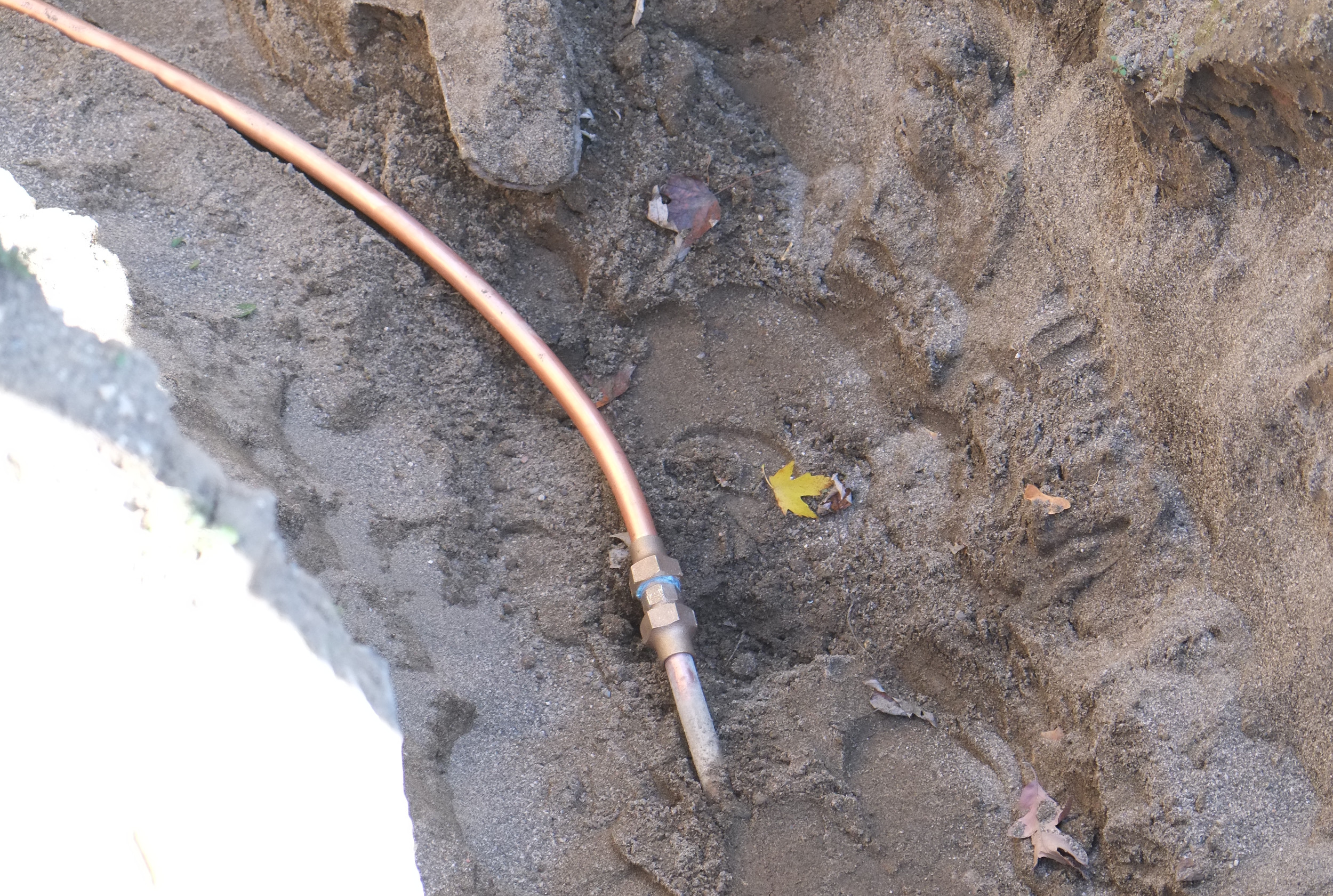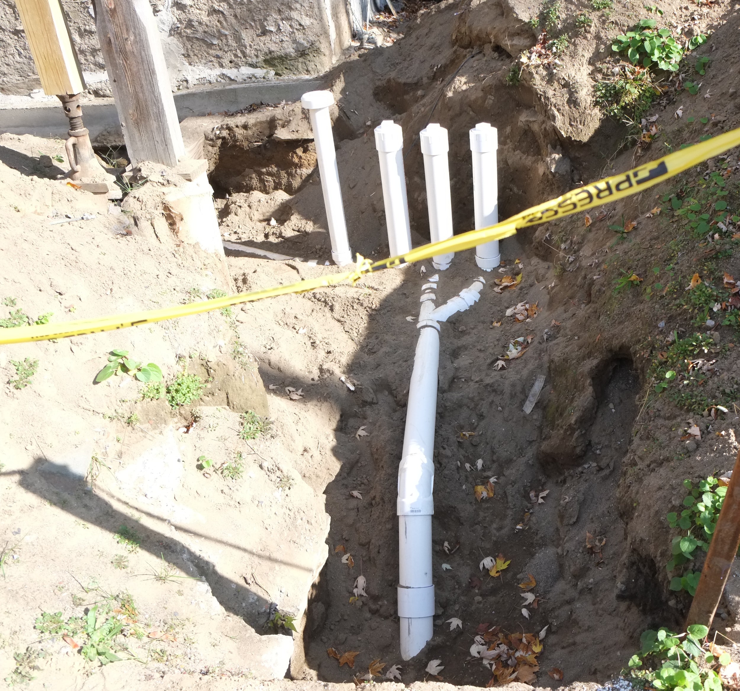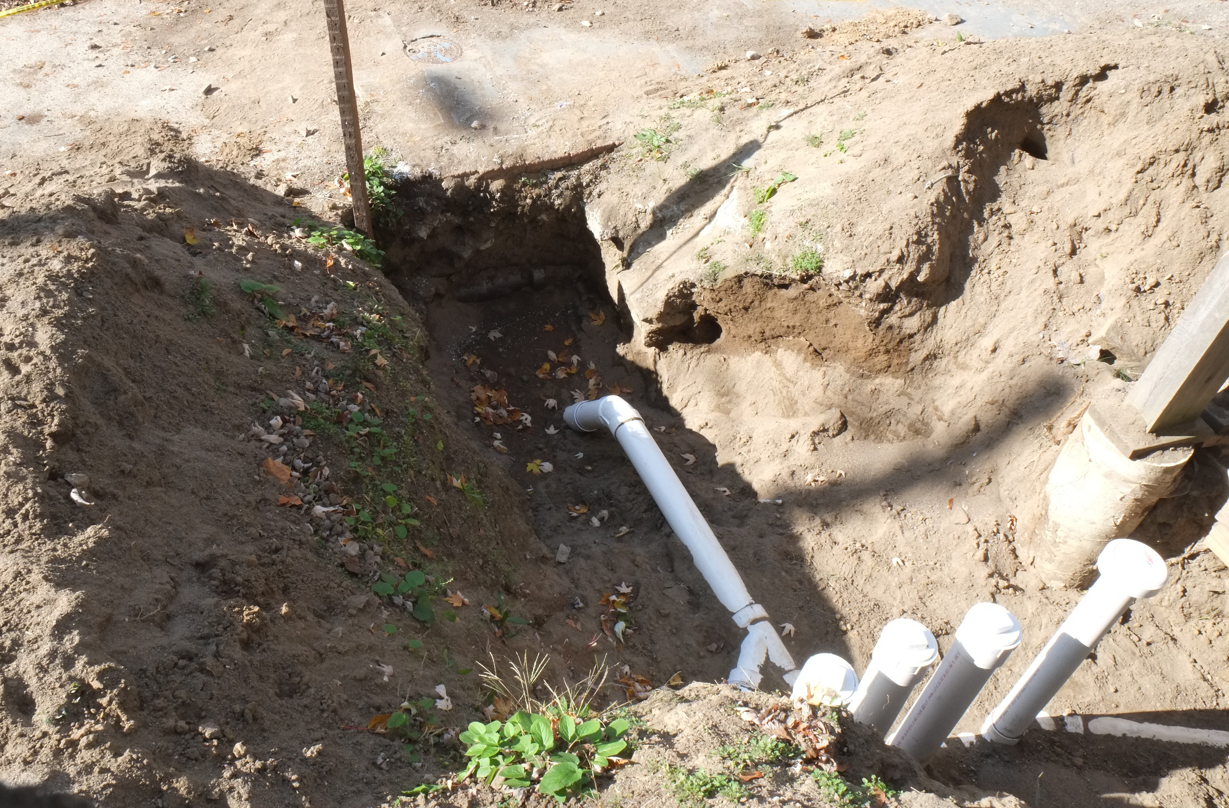 After months of waiting our plumbing has finally been roughed in [spfx: Hallelujah] and we’re now connected up to the street. This doesn’t mean we have a working loo or sink etc., just that pipes are in place for such porcelain devices. We can now fill in all the trenches and holes, some of which were putting our walls at risk of failure. Thank you Nick and Cameron from Sinnott Plumbing.