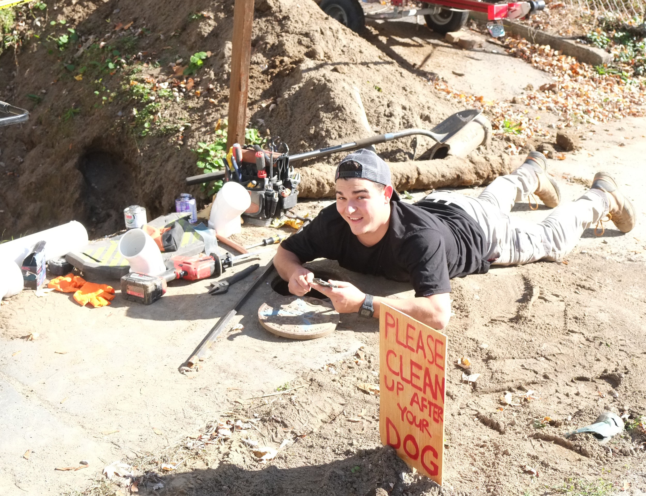 In the pics you’ll see a section of the old cast iron sewer pipe. Cameron said he had never seen one as thick, it was a good 1/2″ and the metal inside looked as good as new. Pretty good for being under the ground for over 100 years.