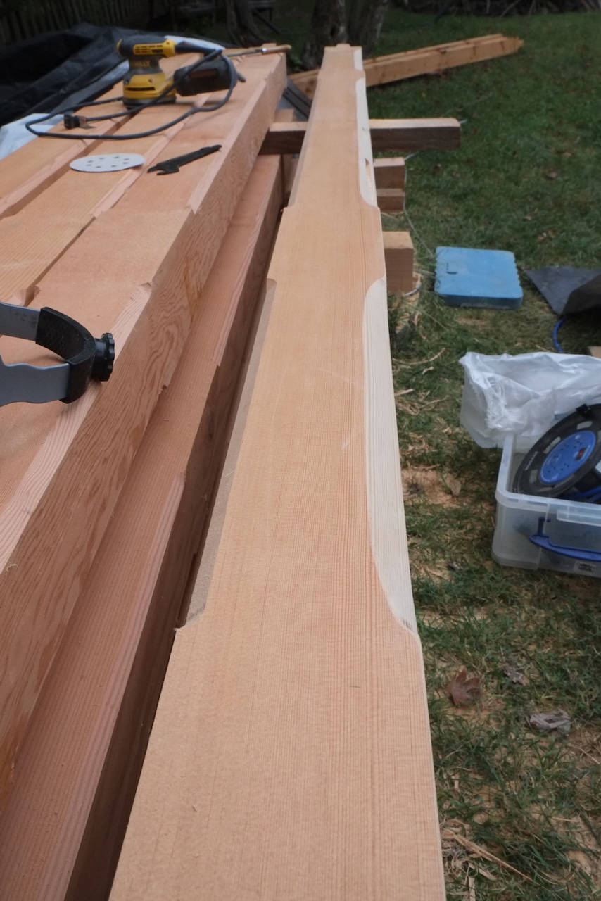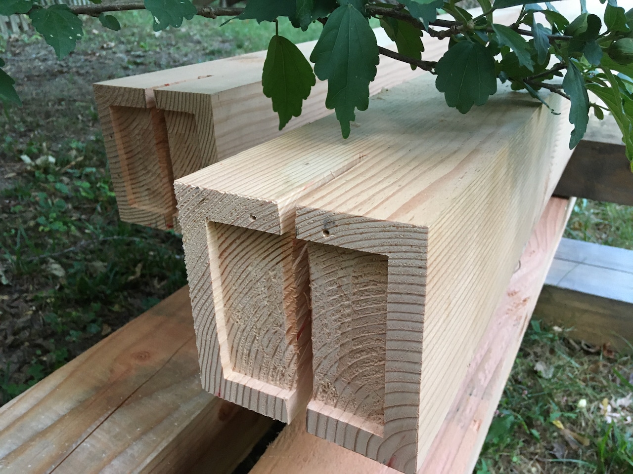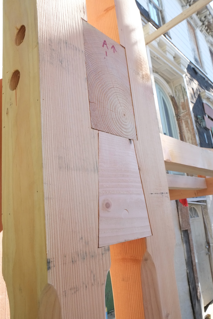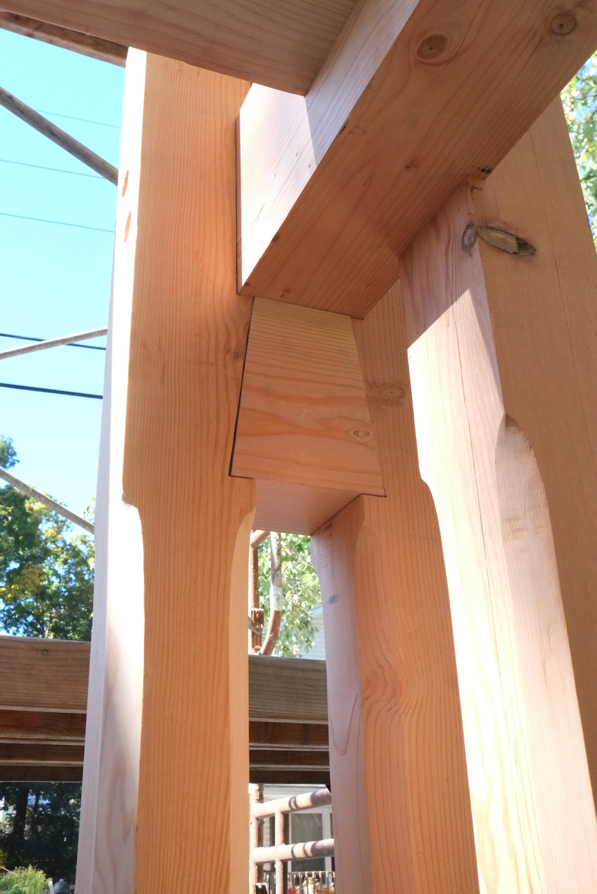 The construction techniques used were similar to the original porch, with some lovely pocket tenons, pinned in place with hardwood dowels. There are a few heavy-duty galvanised bolts here and there but they will be hidden by wooden plugs. It is a delight to look at.