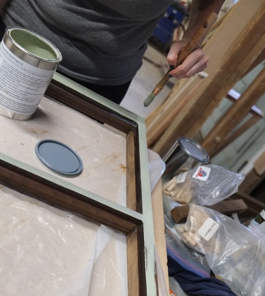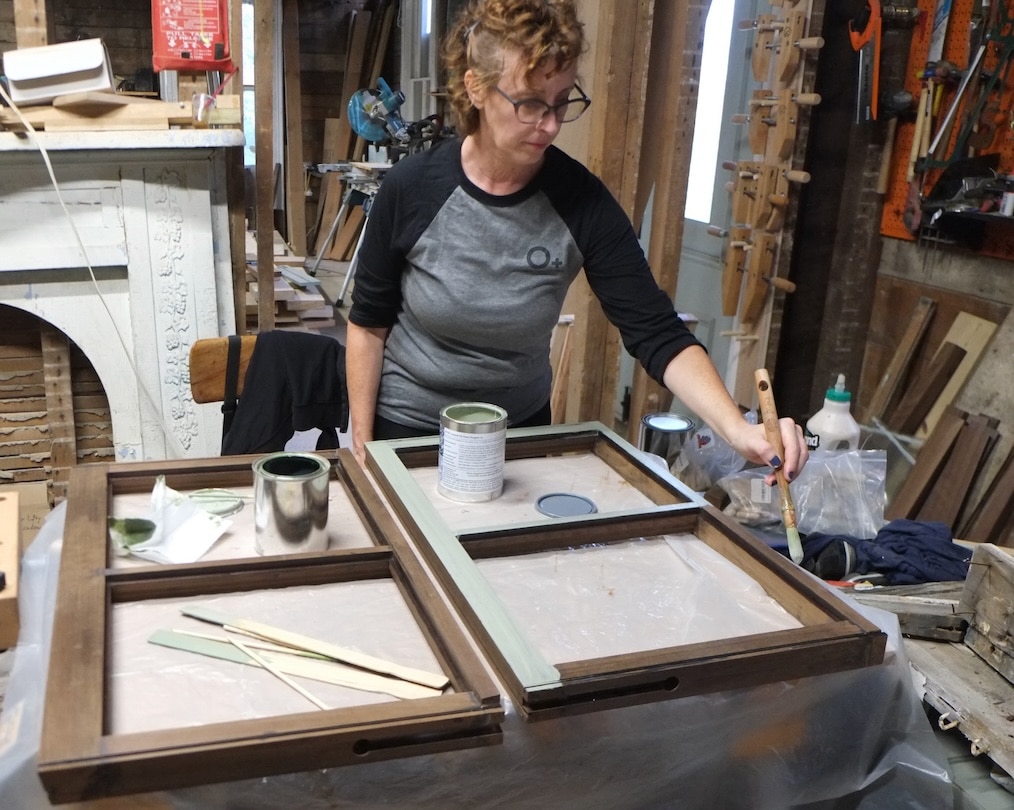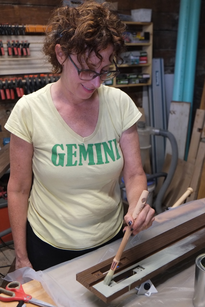 Currently, we’re prepping the wood for paint, sanding it, filling in any blemishes, etc., and then we will give it a few coats of primer, for which we will be using linseed oil paints.
