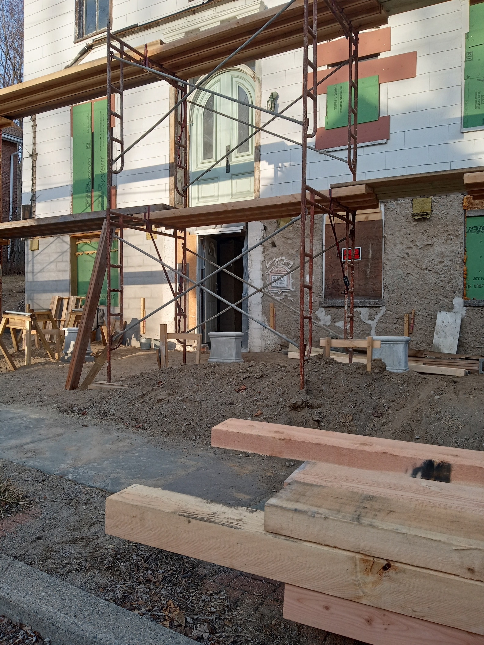 After some setbacks and delays our porch has finally been raised and how majestic it looks. Craftsmanship is top-notch. From the amount of comments from passers-by, I think we have achieved our goal of re-creating the original porch. It’s not an exact replica as by modern standards the old porch was under-engineered but I think we’ve managed to strengthen the structure a lot, whilst still retaining the original aesthetics.