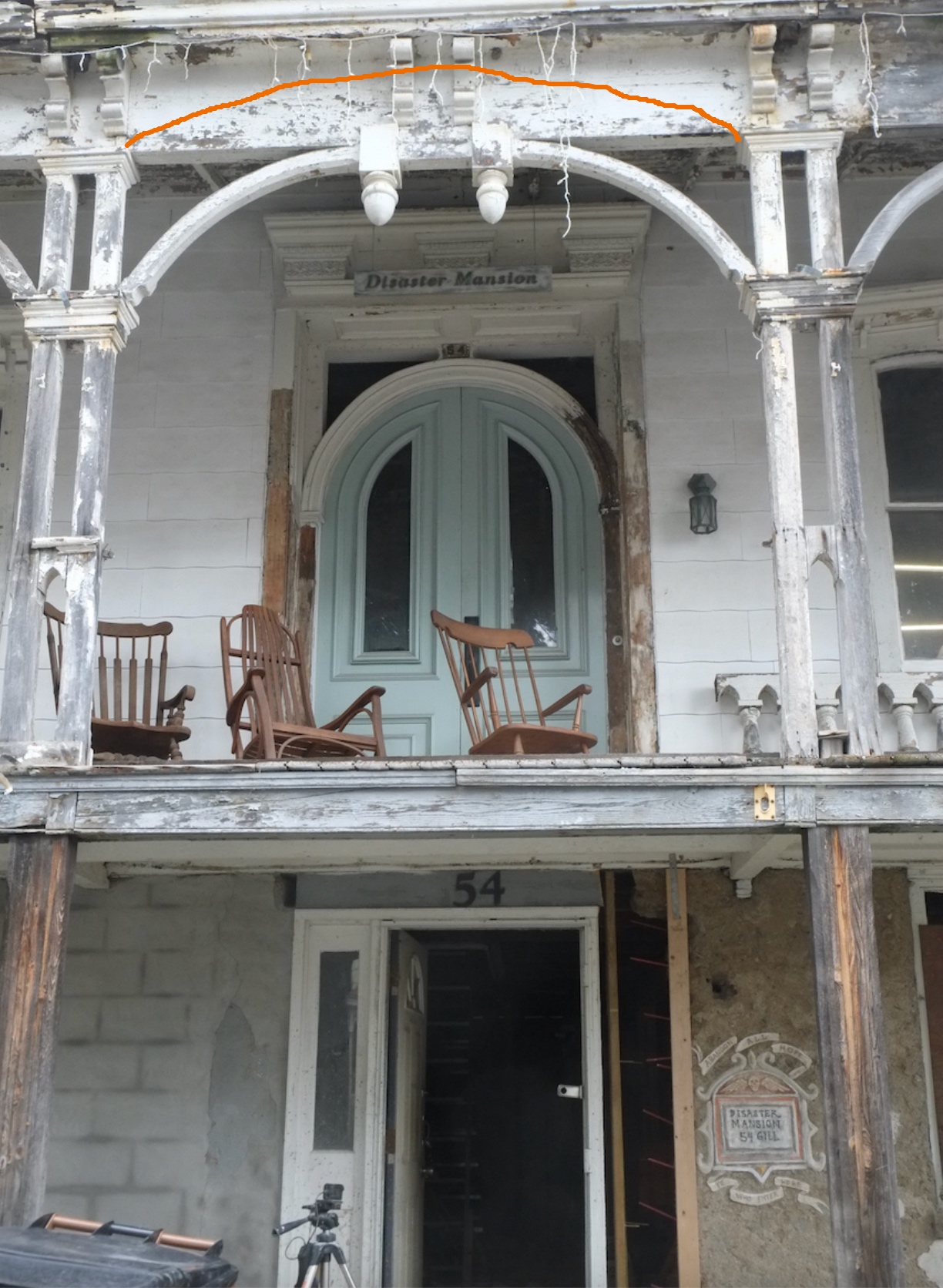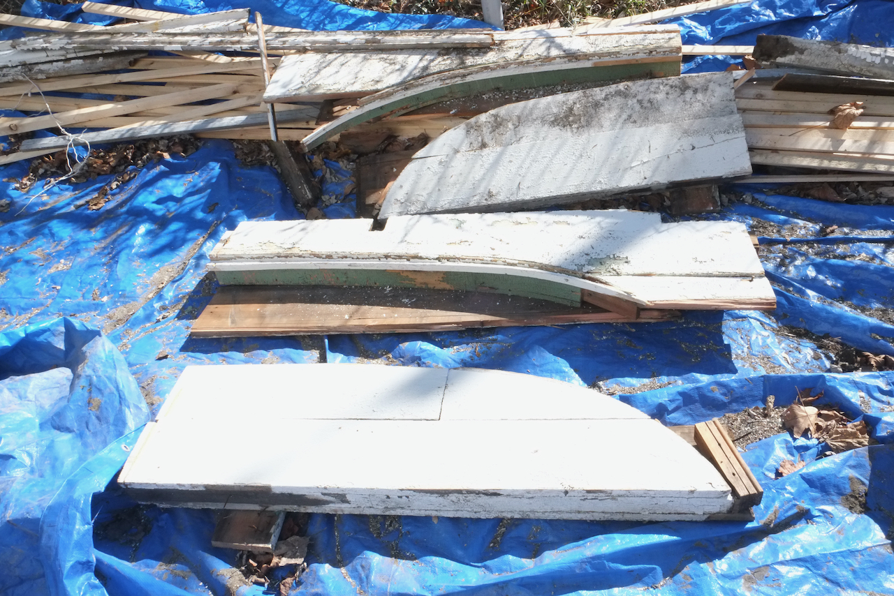 We asked Andre to save all the detailed bits such as the corbels, arches, acorns, curved roof rafters and first floor vertical supports, and we’ll restore a lot of this and if we can’t then they will be used as templates. We won’t reuse the vertical supports for the front porch but I might see if they can be restored and used when we rebuild the rear balcony which is not original and damn ugly.