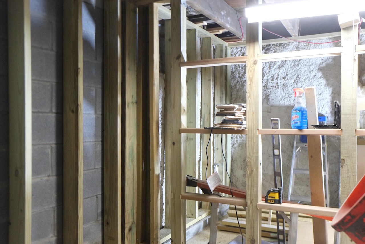 Finally it feels like things are starting to take shape. Next steps are for us to finish off the internal framing for the bathroom wall – we want to add some built in cabinets, hence why we’ll do this wall. Also there is a small wall in the doorway which we’ll frame up and add a built in seat. After that it will electrical, plumbing, insulation and then sheetrock and plastering.