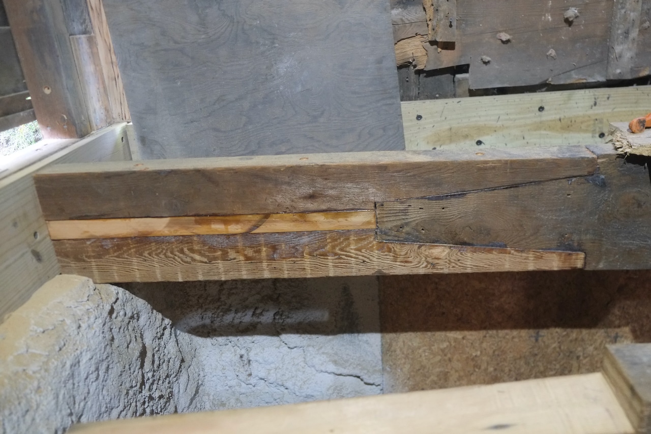 We finally finished the wall and rim joist repair which took me much longer than I had anticipated, that said I did remake the rim joist out of old growth lumber to match the existing wood as I didn’t like the look of the pressure treated stuff. All in all I was pleased with how it came out. The floor joists still remain to be done.
