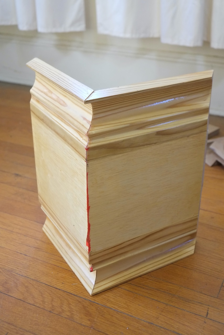 The idea was to design the columns so they’d blend in with the existing architecture, not sure I achieved it but I think we’ve done a decent job and once painted and weathered, they’ll probably look as though they’re original, which is of course what I will tell everyone, hand chiseled over a century ago from the finest Kingston stone! First set of moulds were made of wood and ply and I made the parts at different times so when I went to fit everything together there were small gaps here and there which I wasn’t happy with.