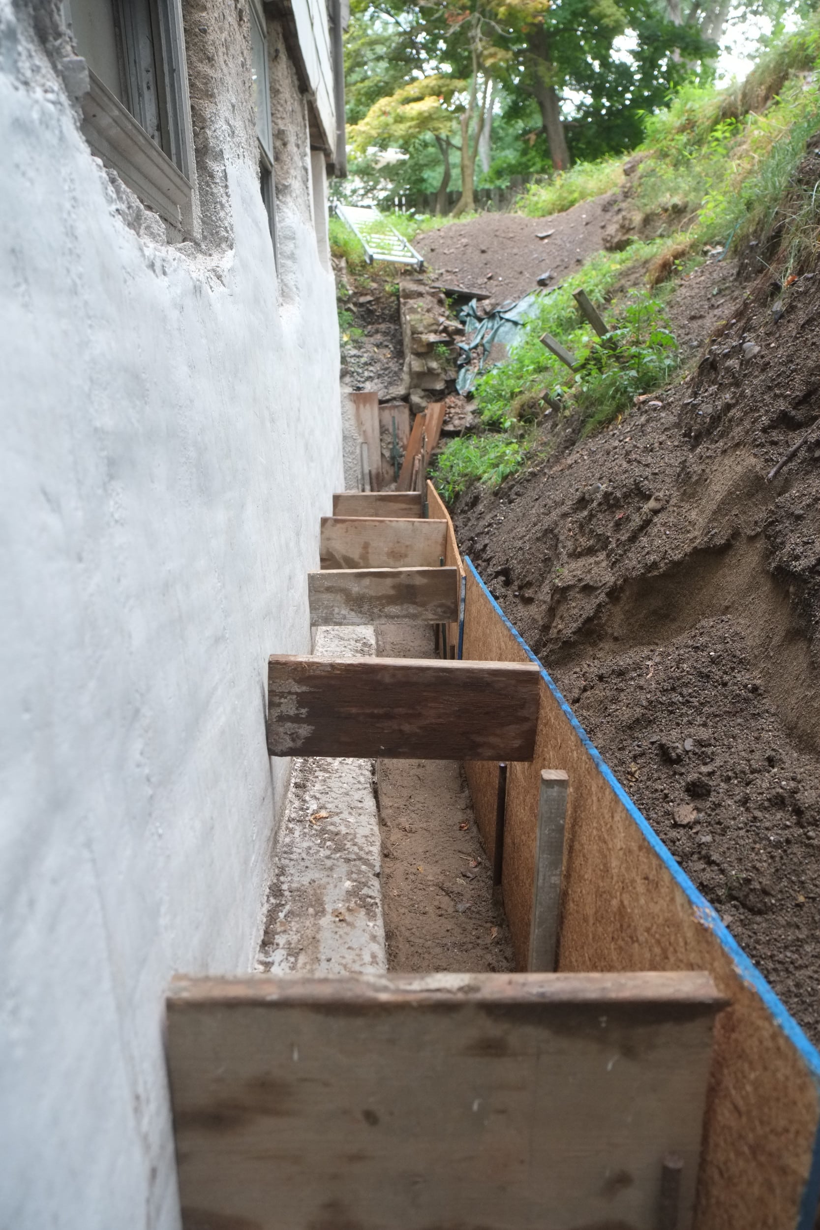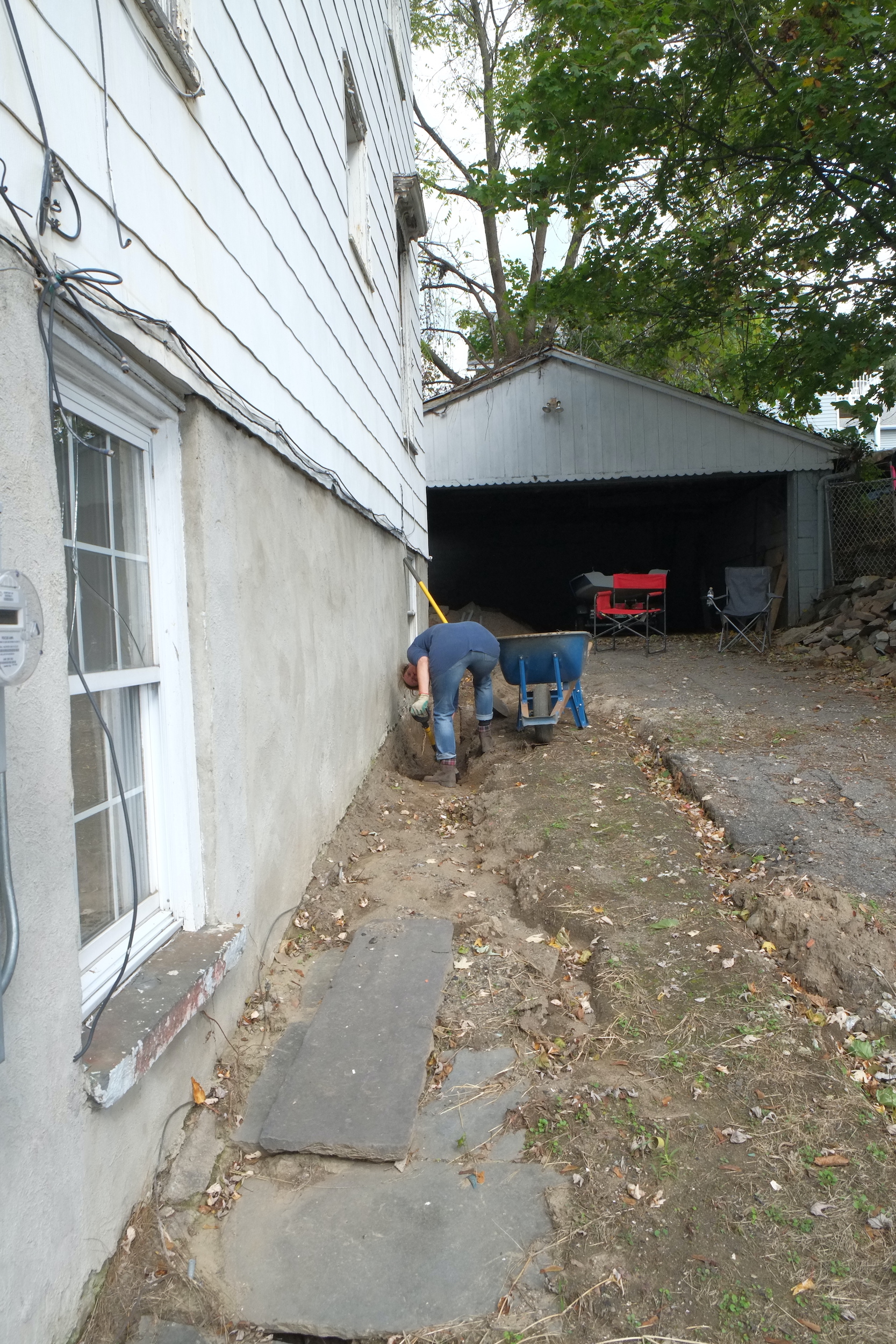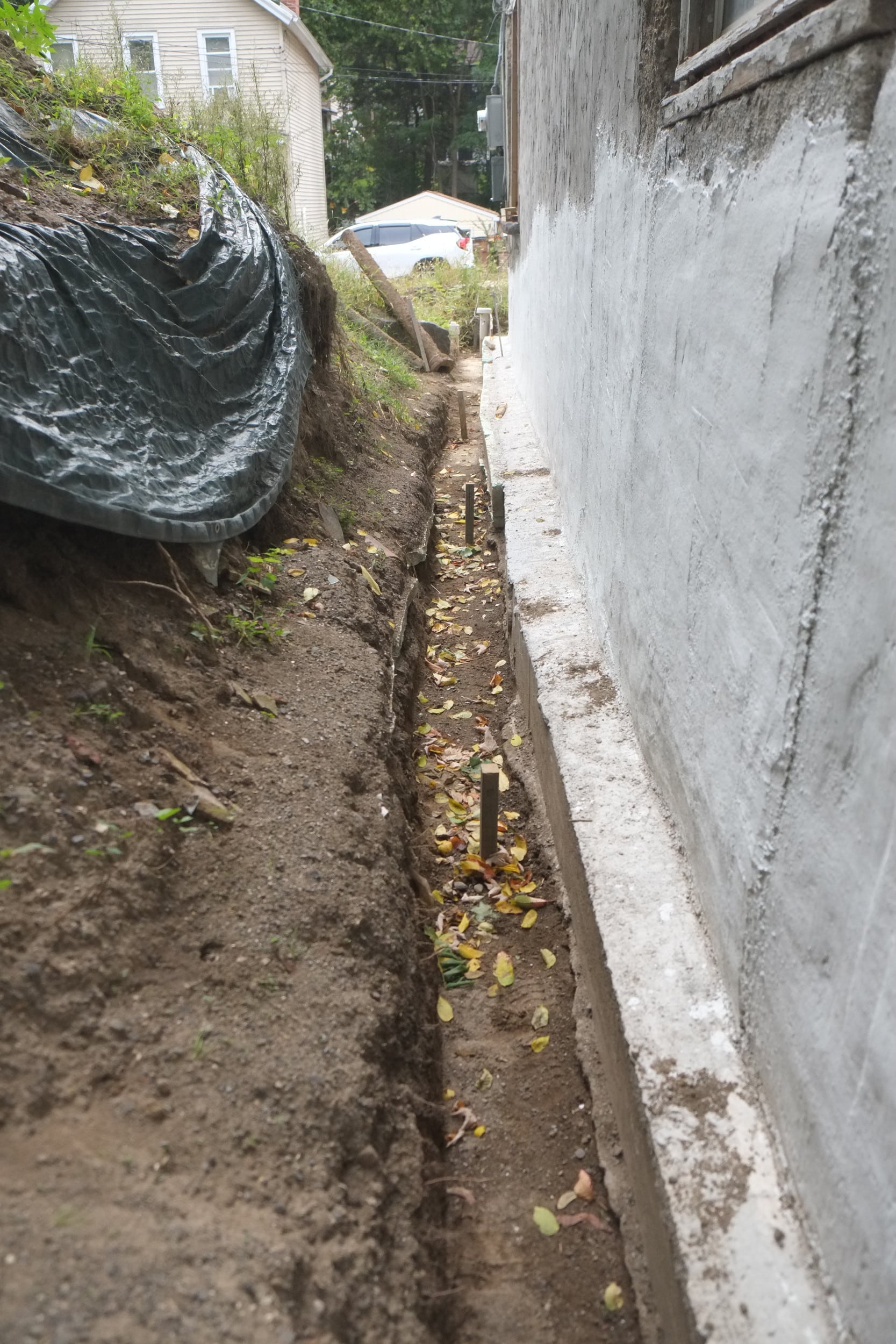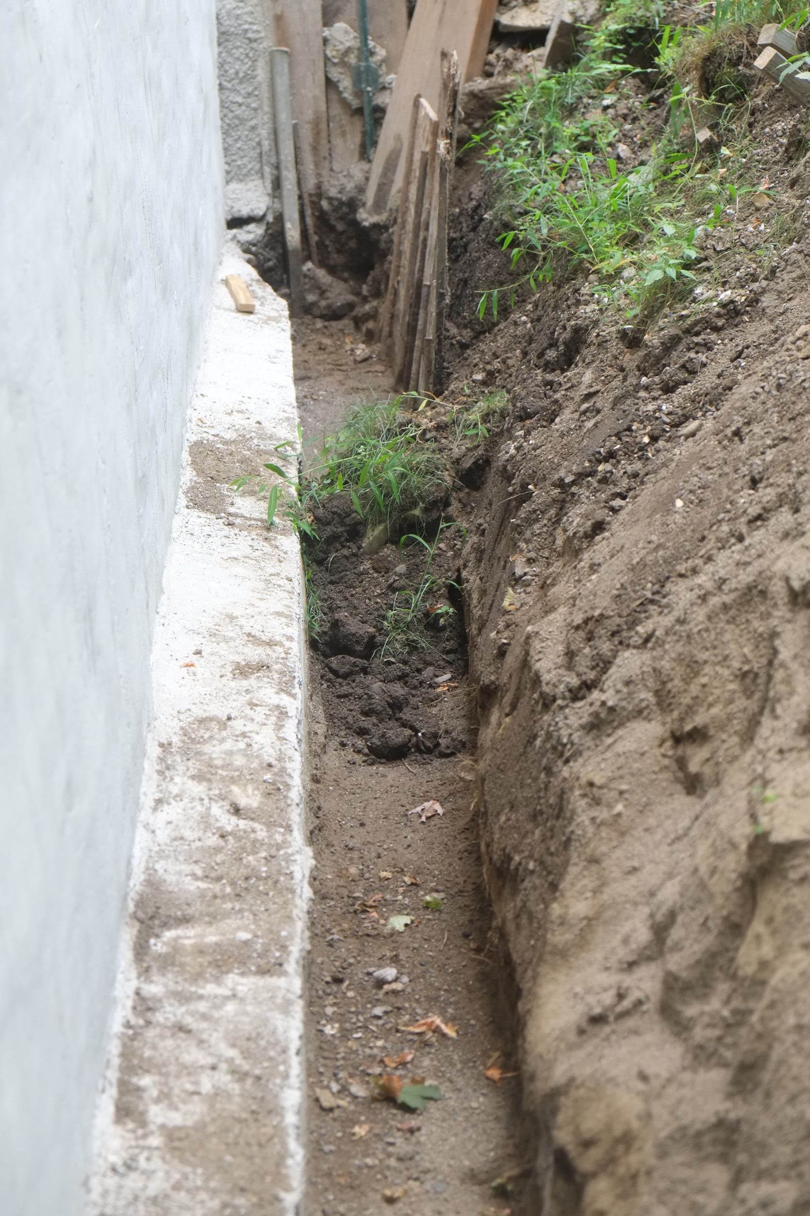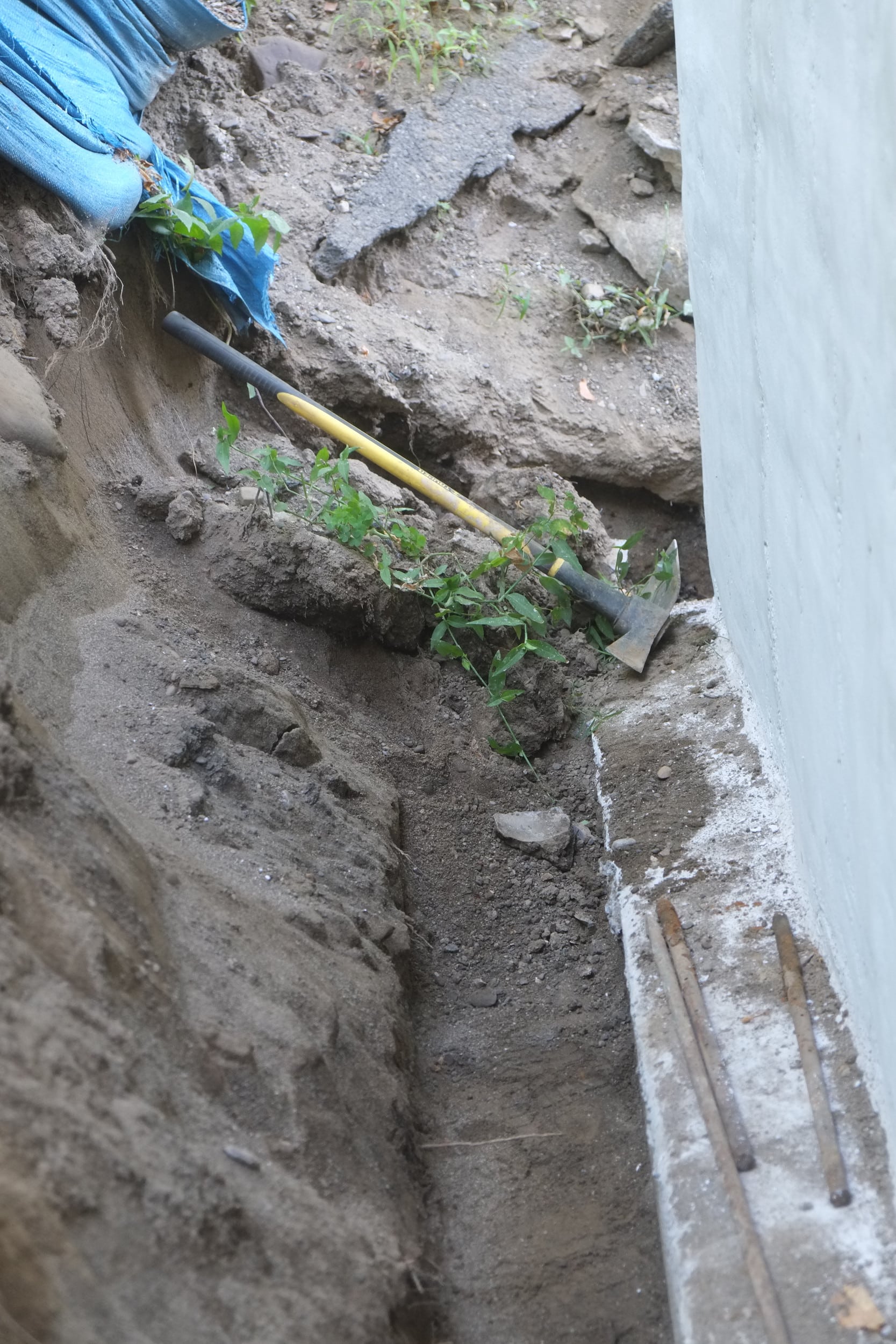 Part 2. Fixing more trench collapses, installing dimple board, geo-textile cloth, piping, gravel, caping strips and finally soil.