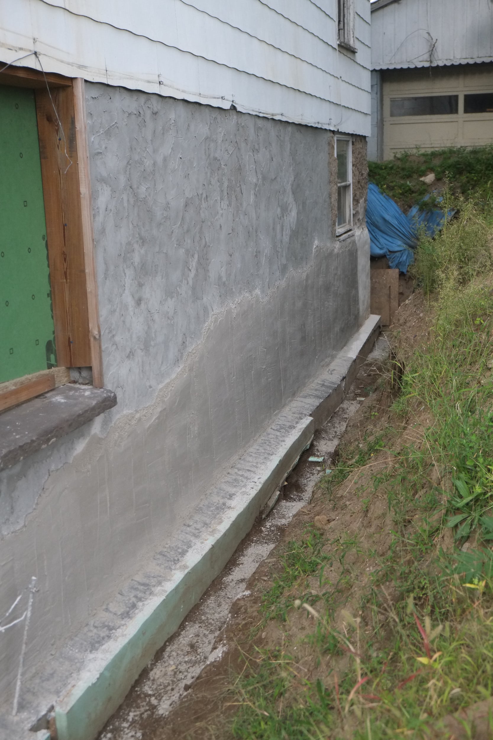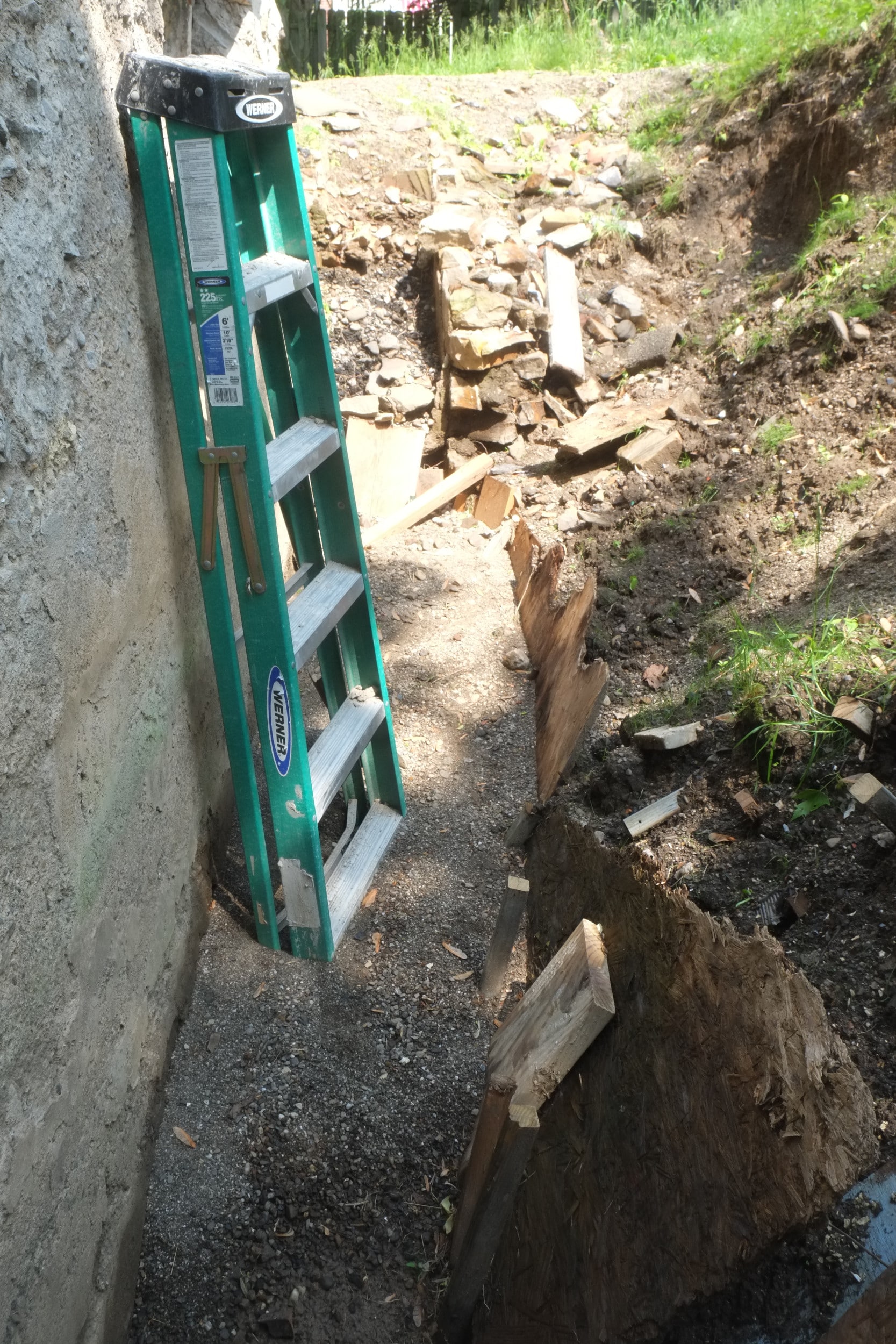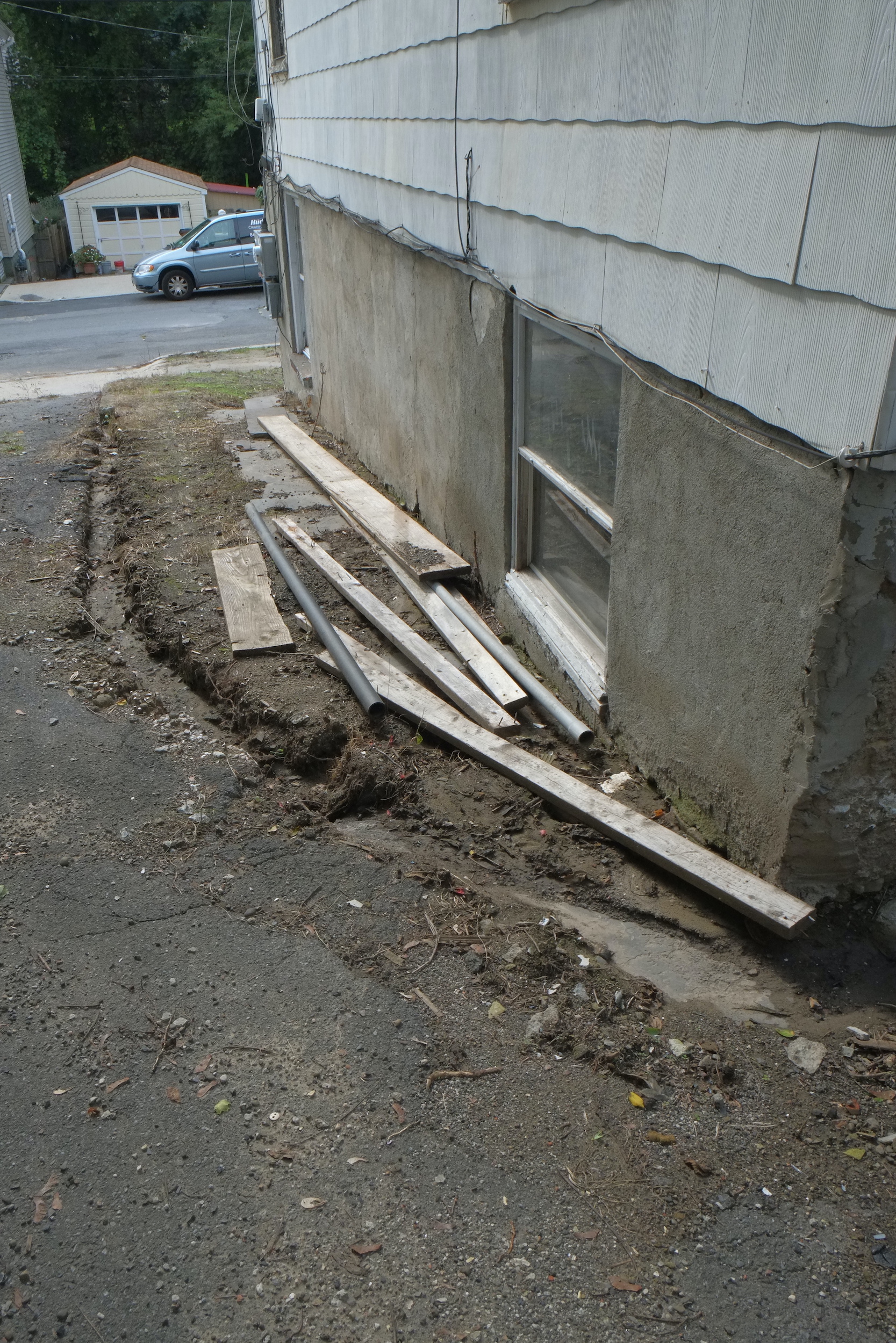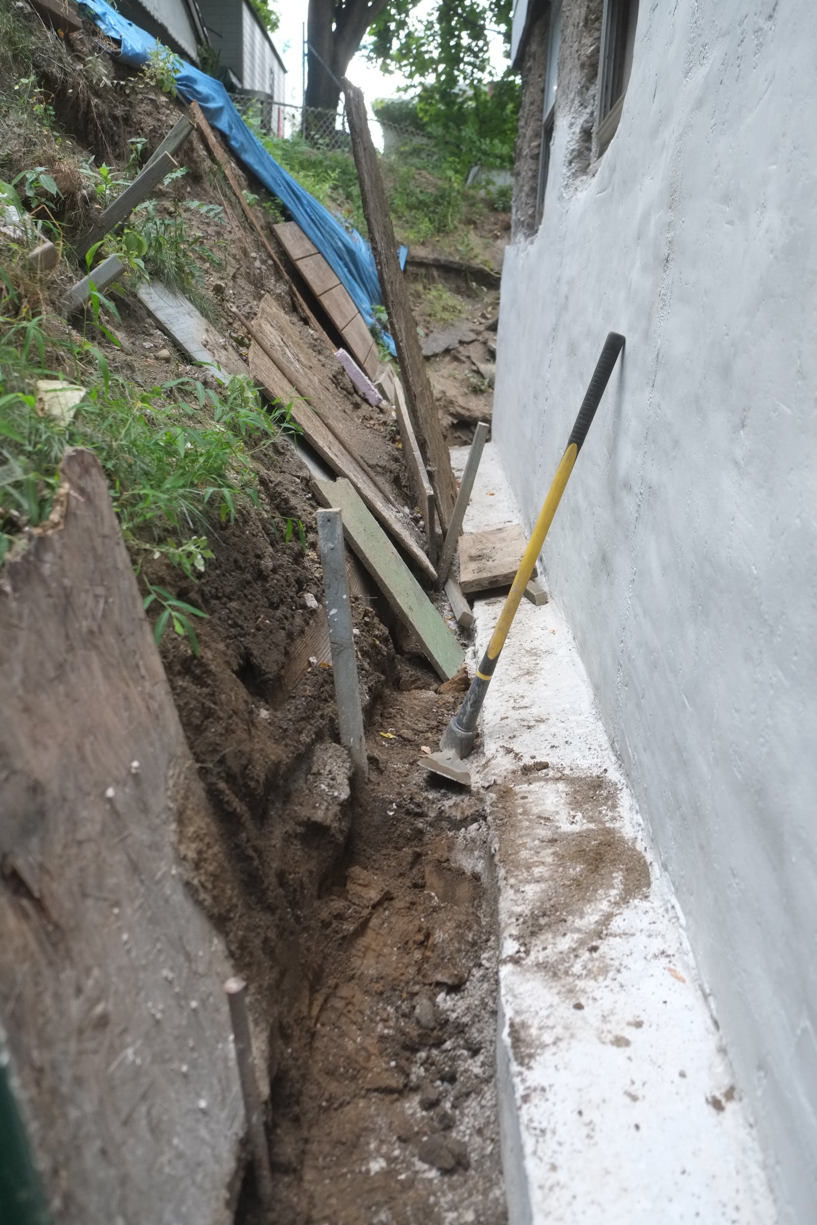 - Sloped top layer of gravel and added on top a thick plastic top layer to again divert water away from house