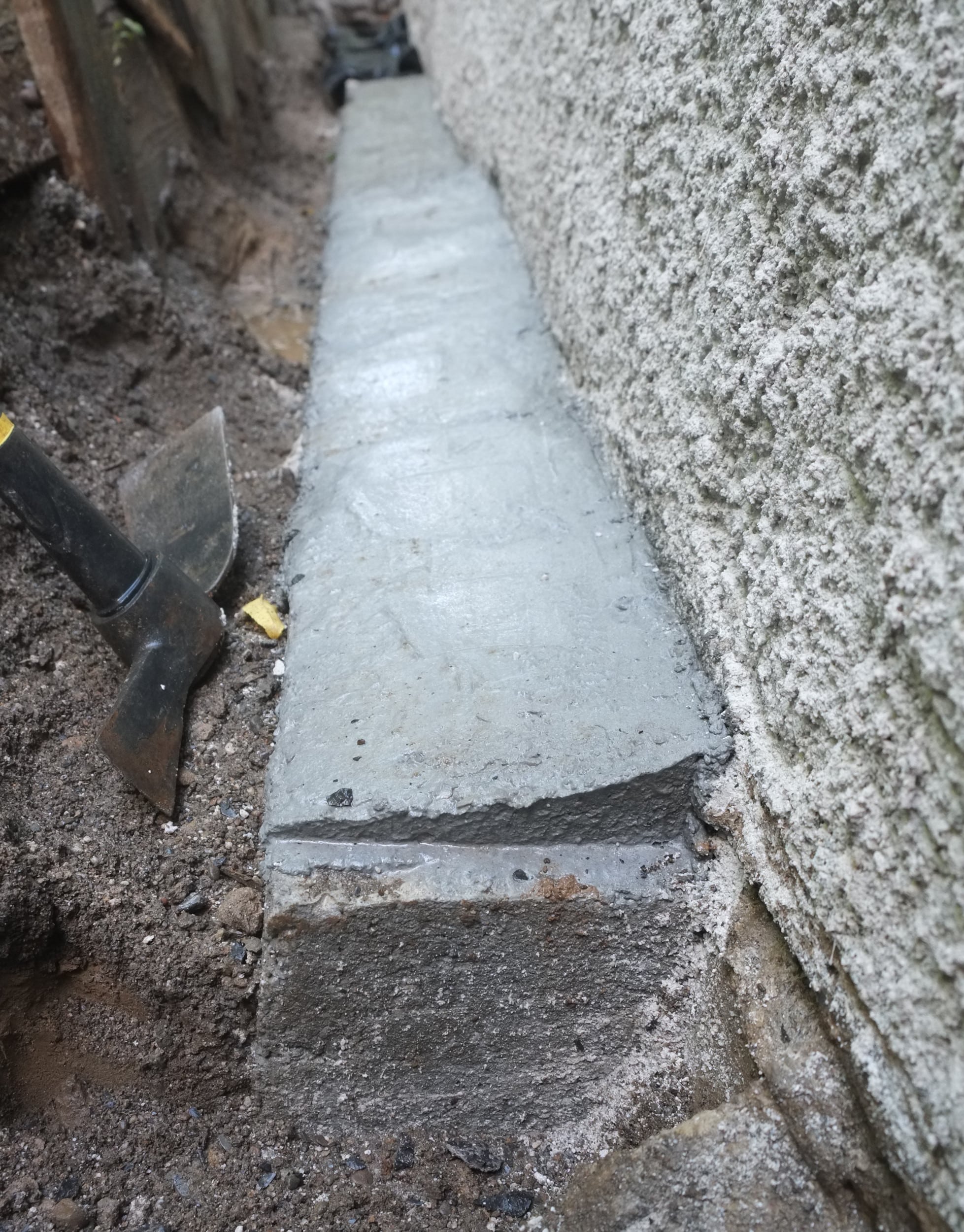 - Chamfer on footings to direct water away from wall