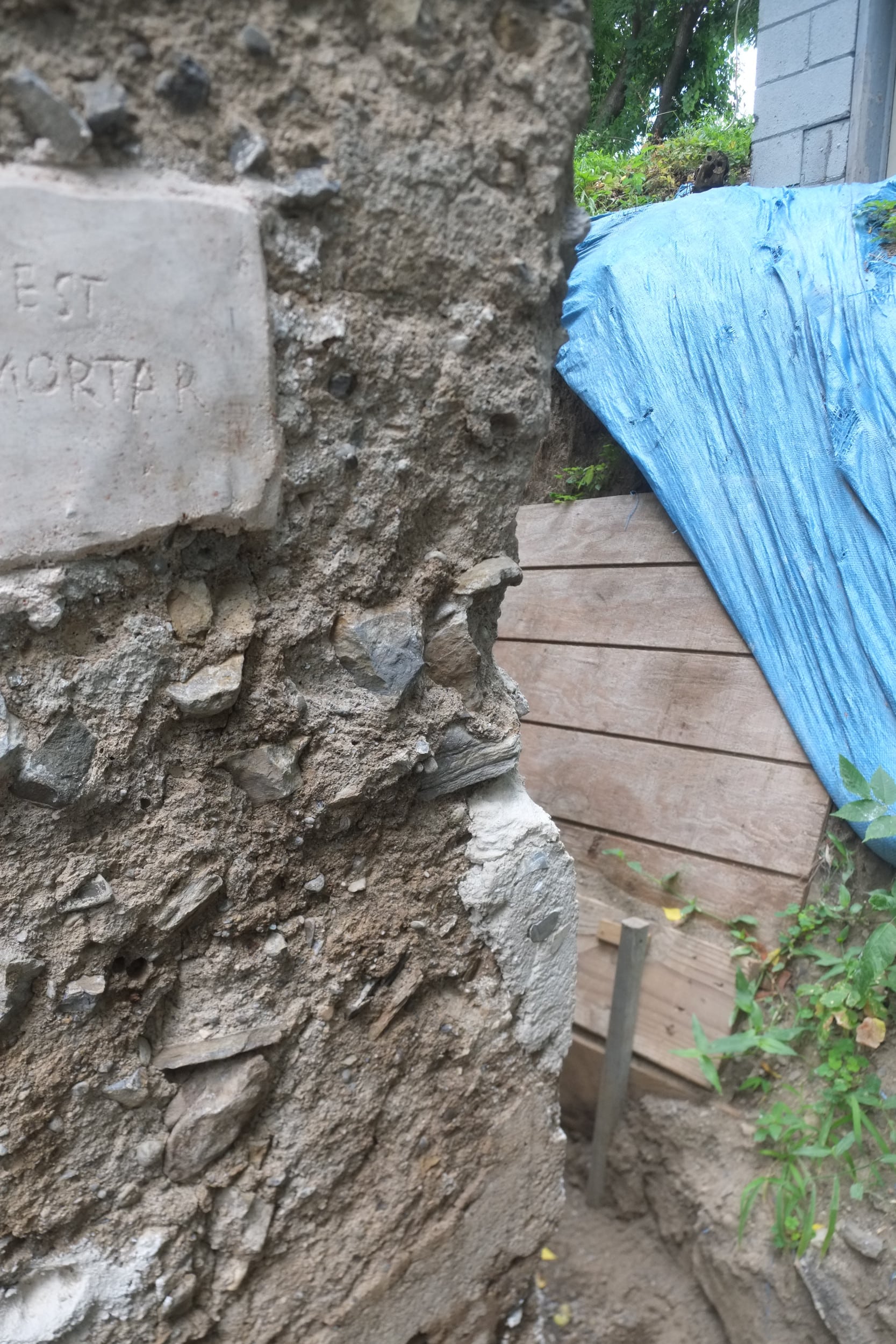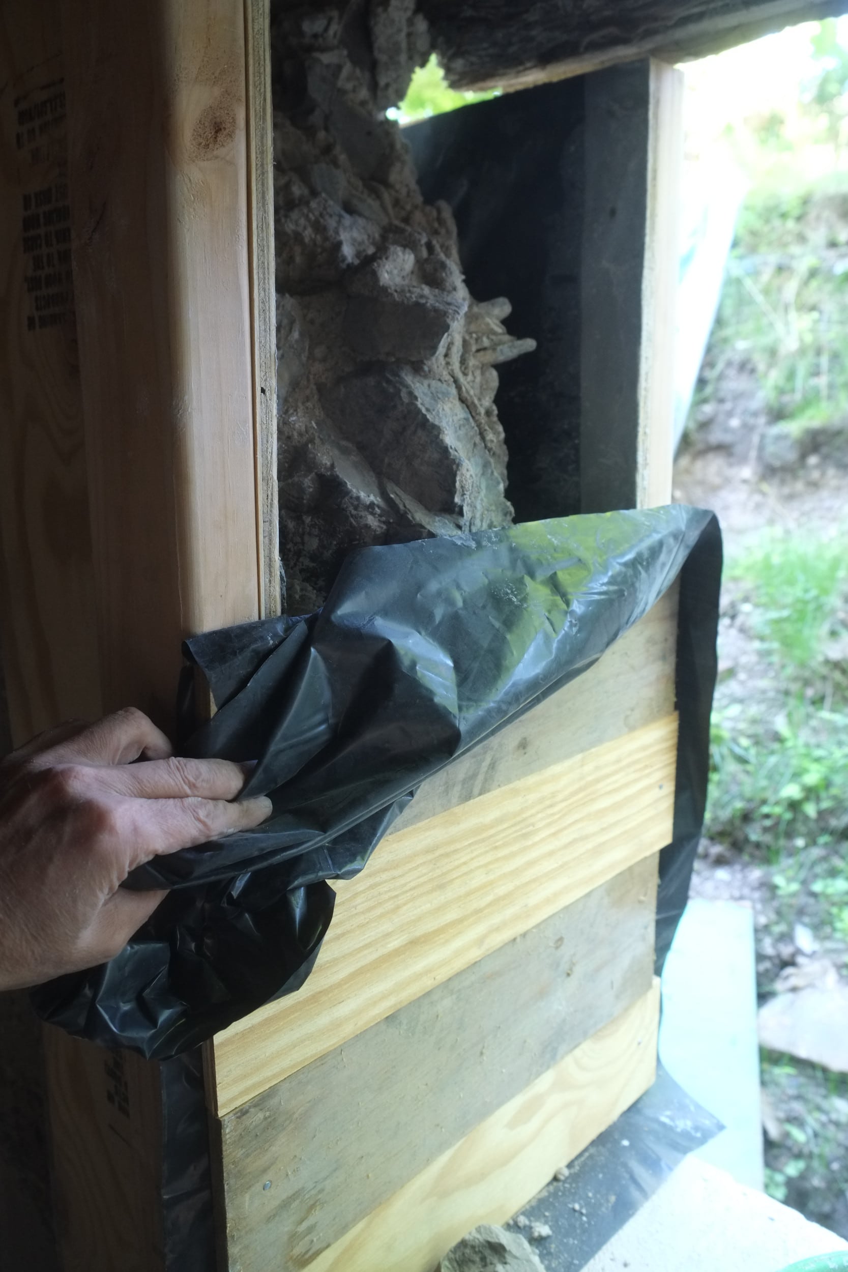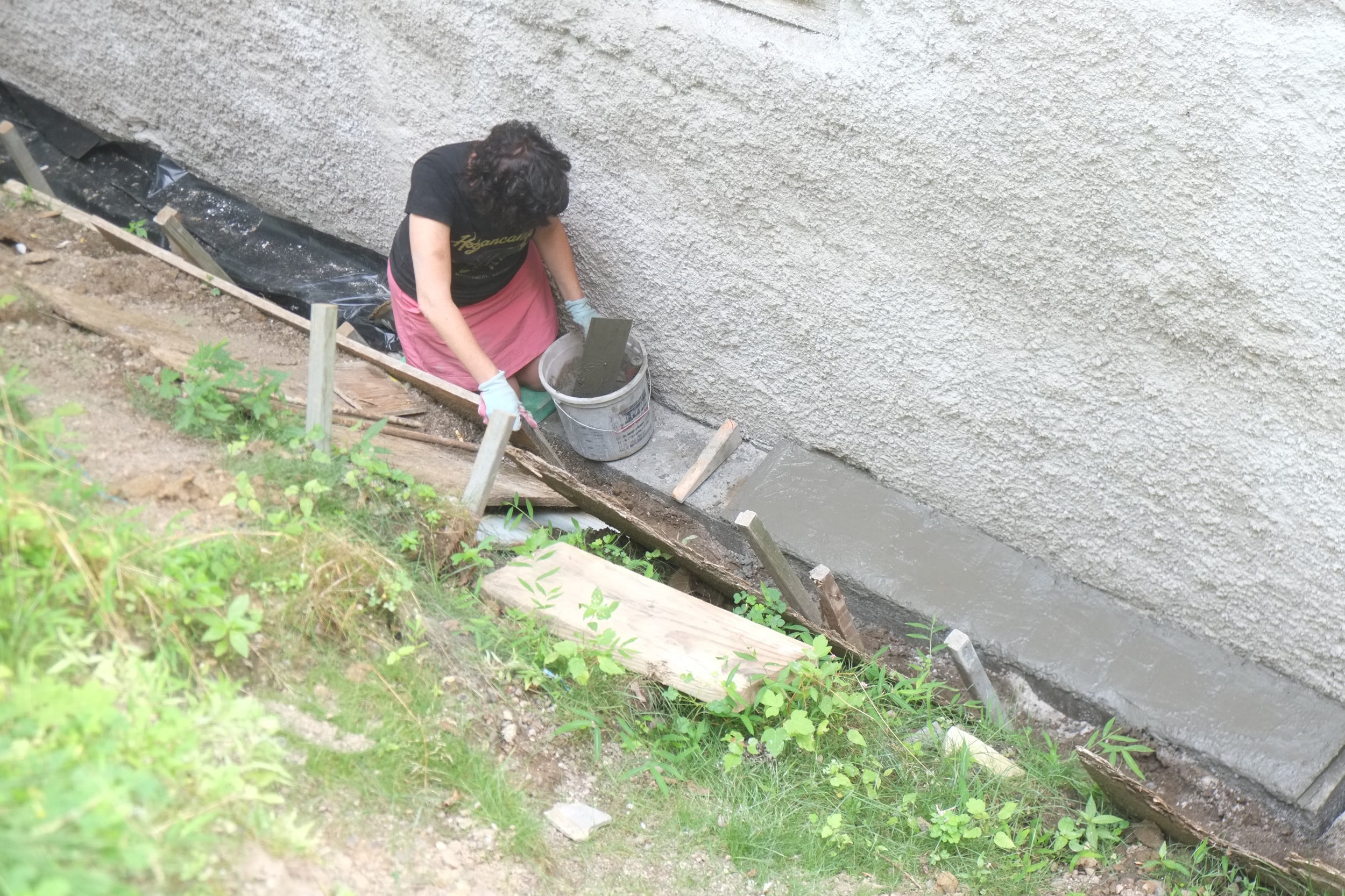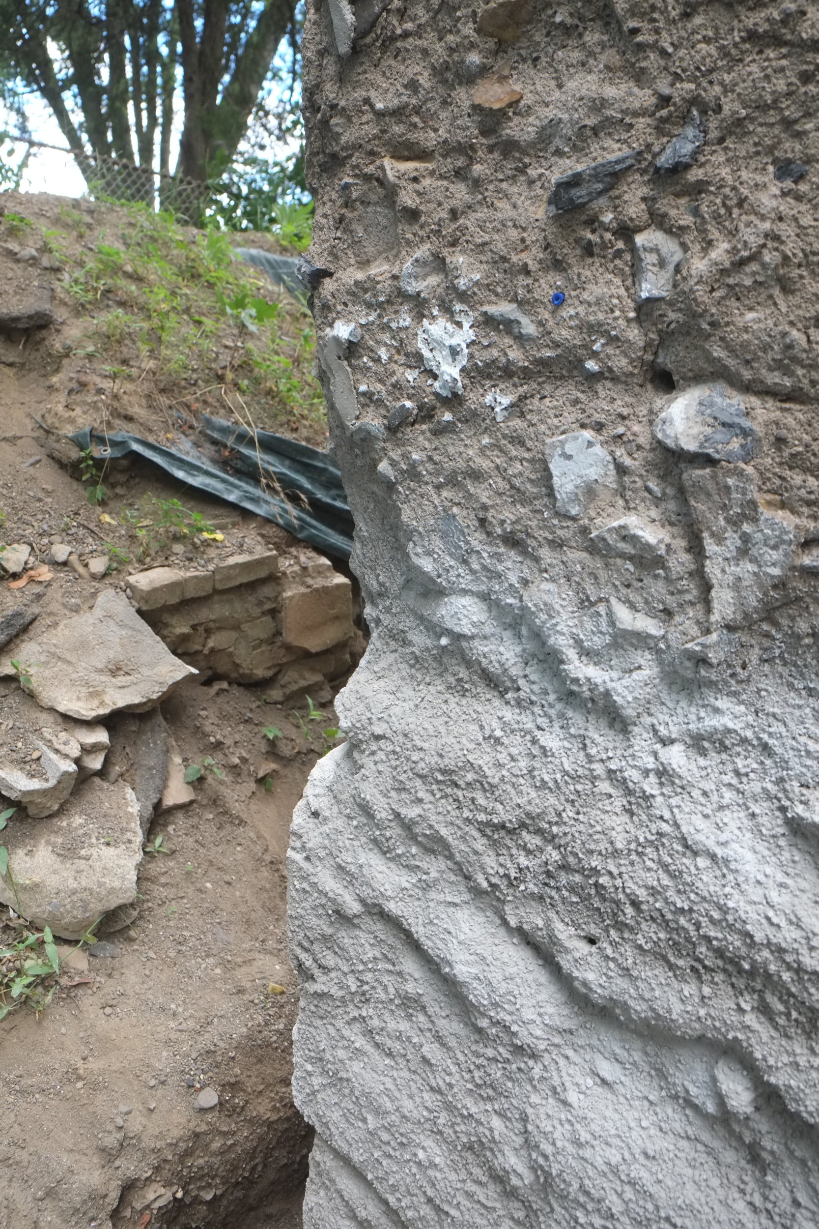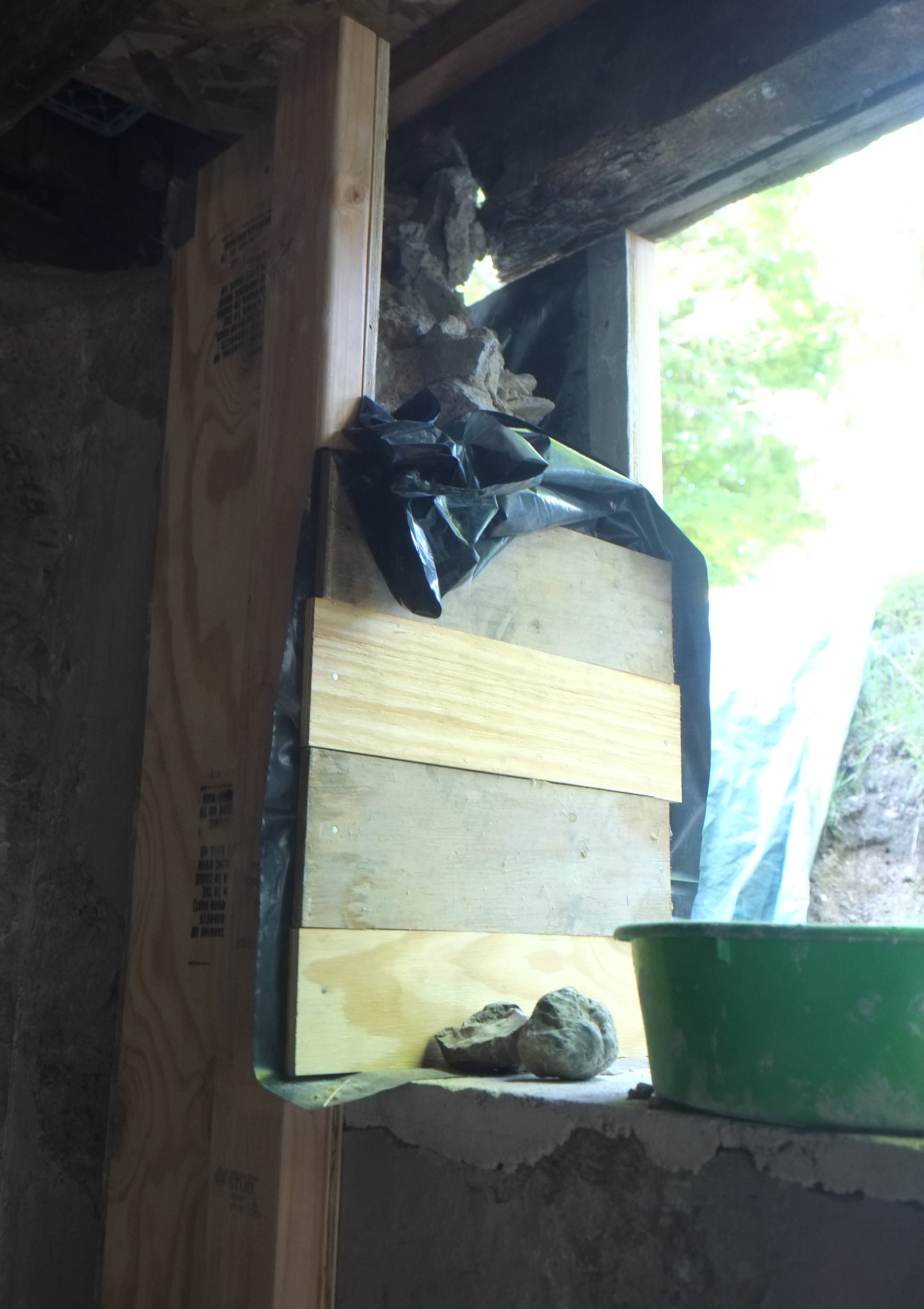 We’ve almost finished excavating the rear for our foundation drain. It did collapse in parts so I cleared that up and spent some money on some semi-decent shuttering to hold back the soil. We’re away at the moment but we couldn’t have started to fill the trench in anyway as the lime paster needs to cure for about a month.
