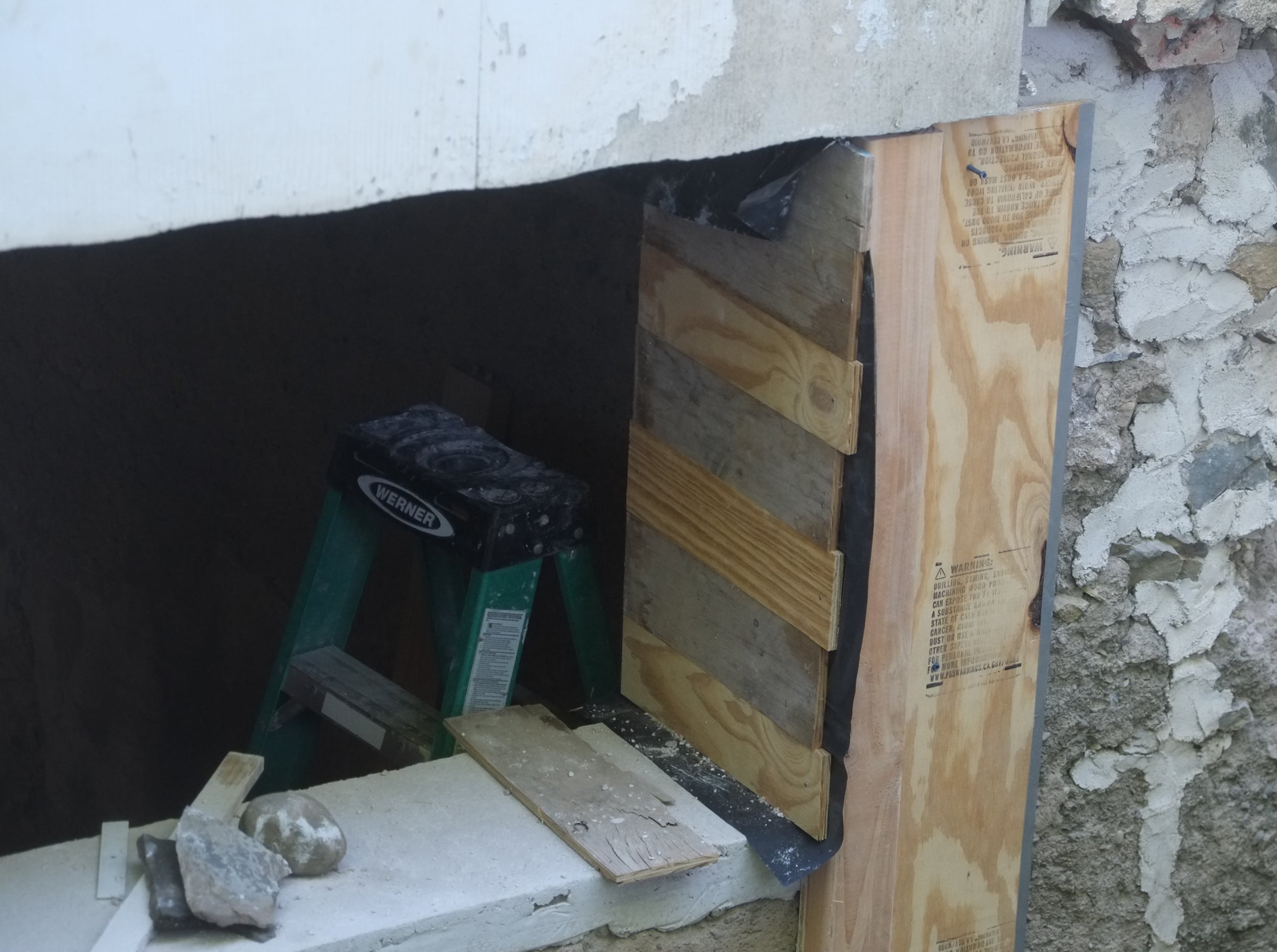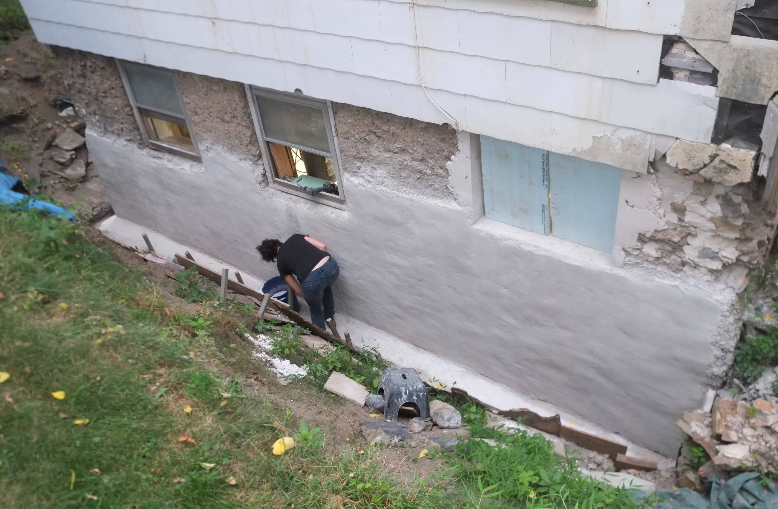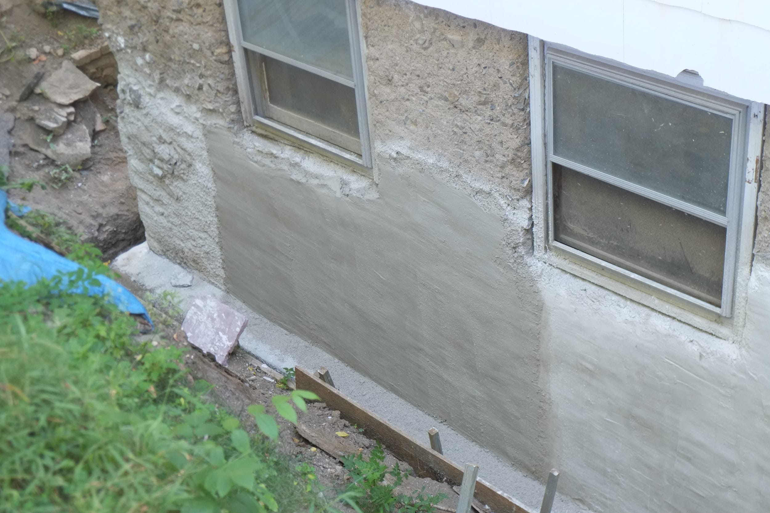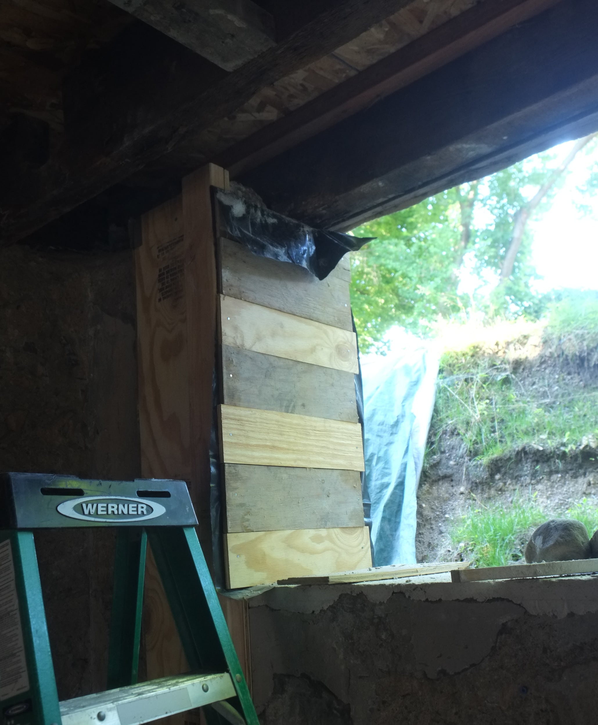 We’ve almost finished excavating the rear for our foundation drain. It did collapse in parts so I cleared that up and spent some money on some semi-decent shuttering to hold back the soil. We’re away at the moment but we couldn’t have started to fill the trench in anyway as the lime paster needs to cure for about a month.