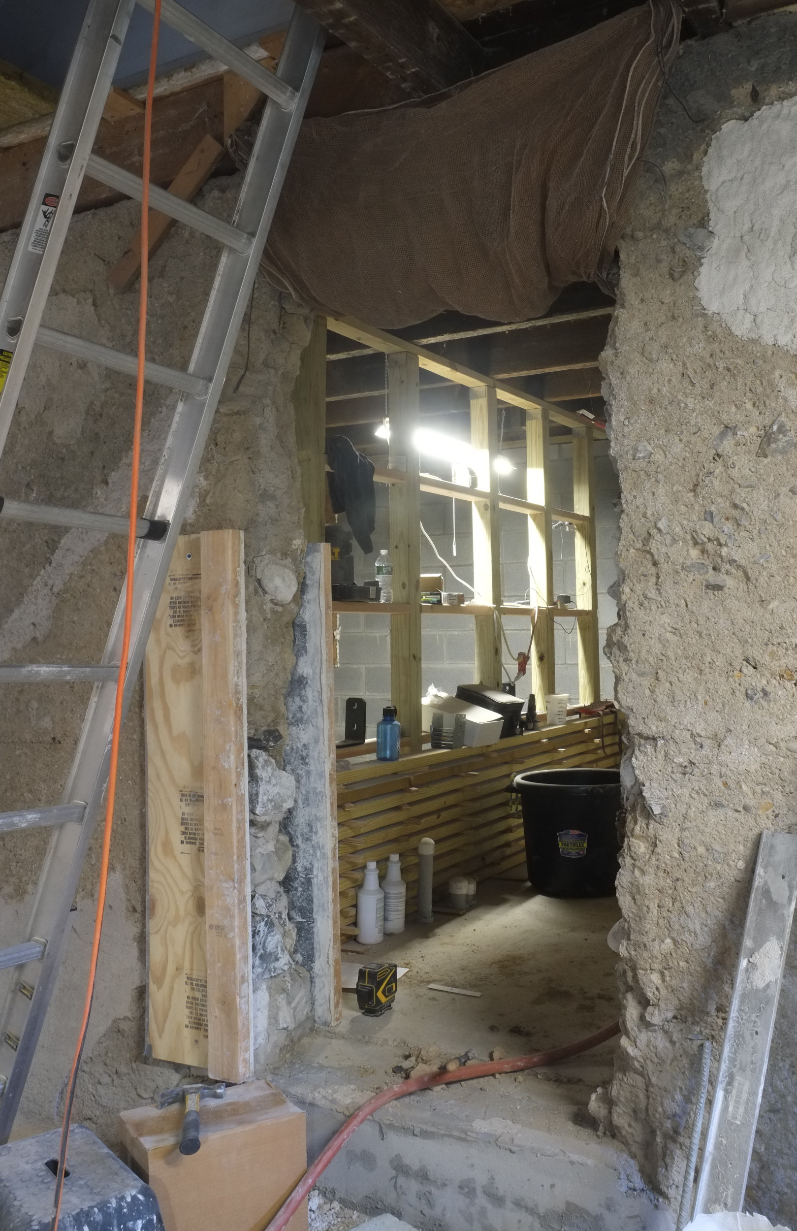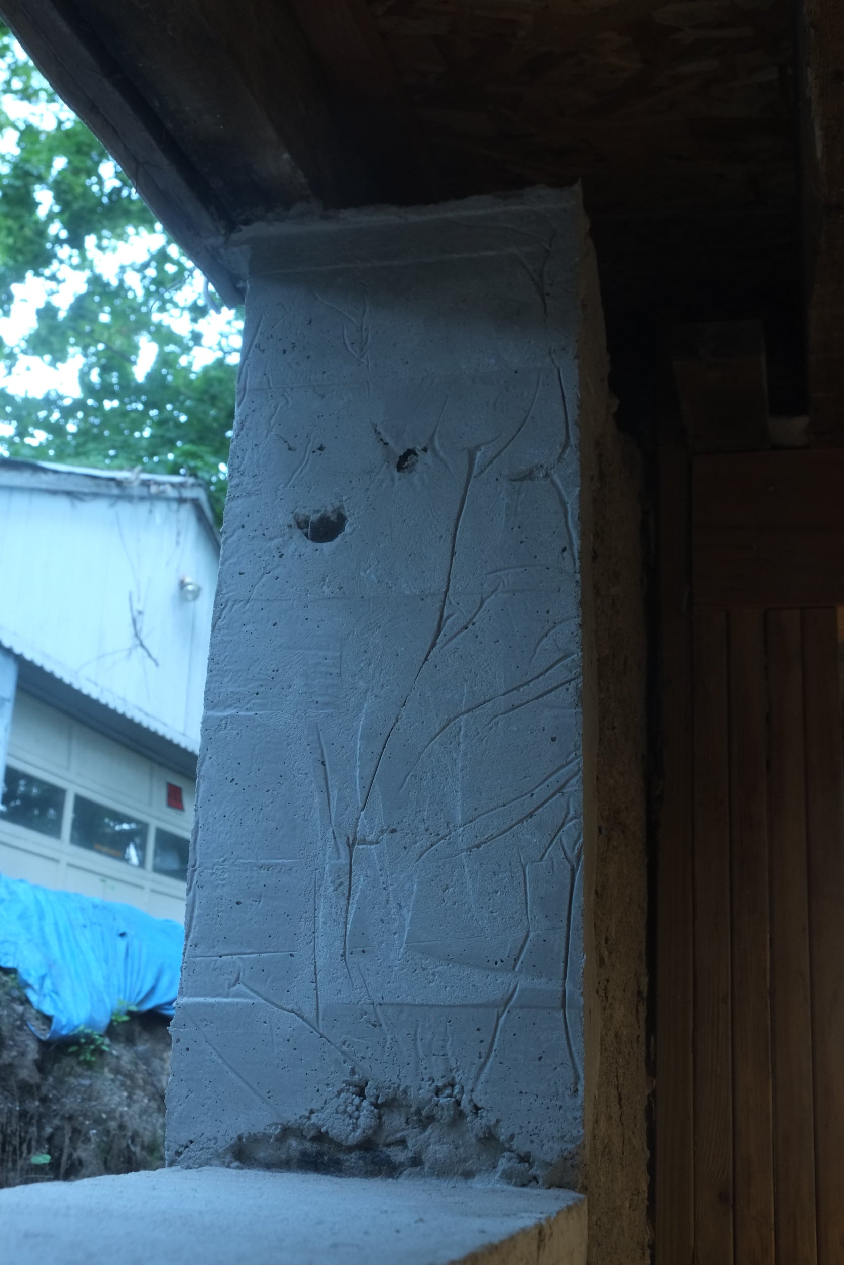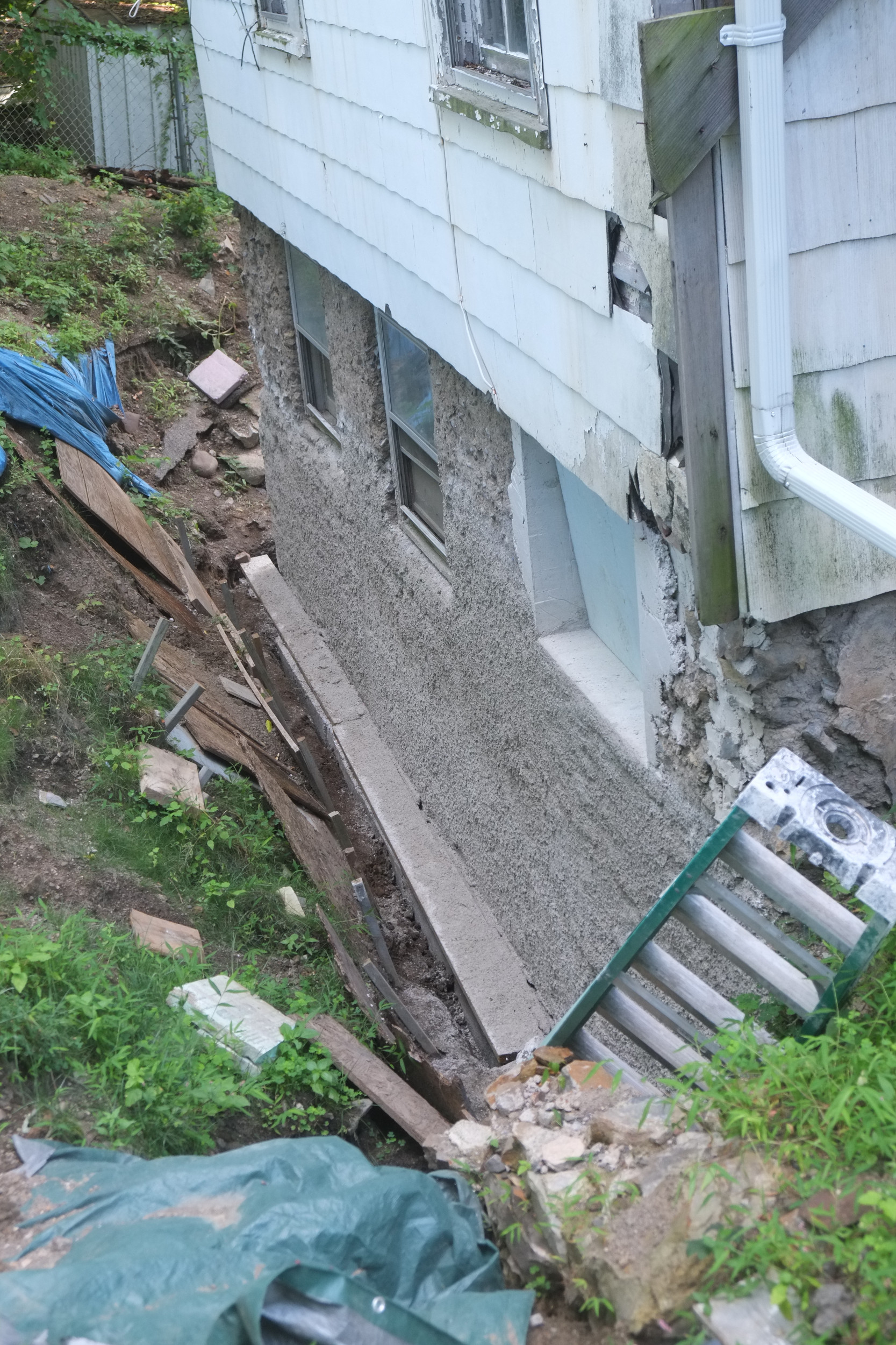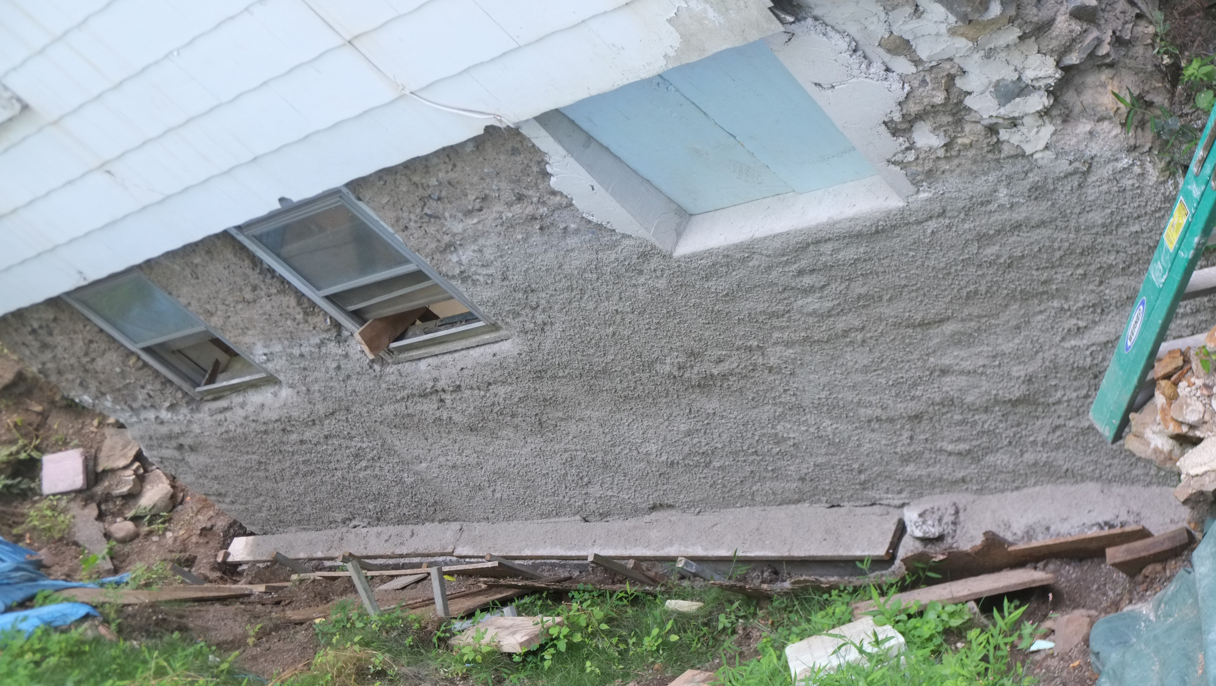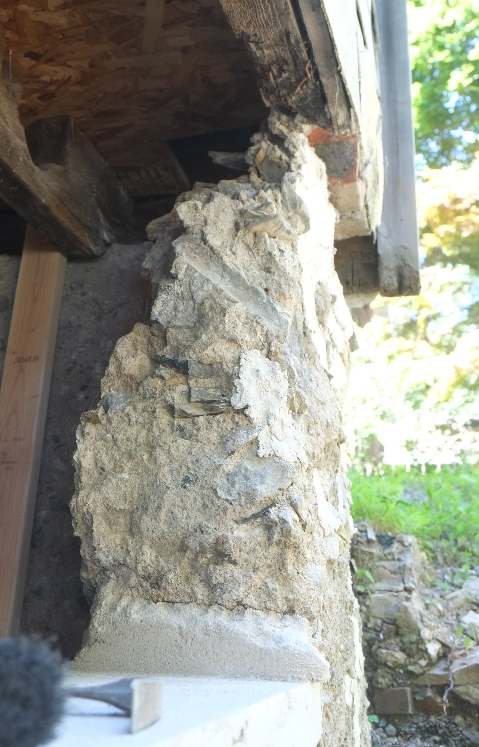 We’ve almost finished excavating the rear for our foundation drain. It did collapse in parts so I cleared that up and spent some money on some semi-decent shuttering to hold back the soil. We’re away at the moment but we couldn’t have started to fill the trench in anyway as the lime paster needs to cure for about a month.