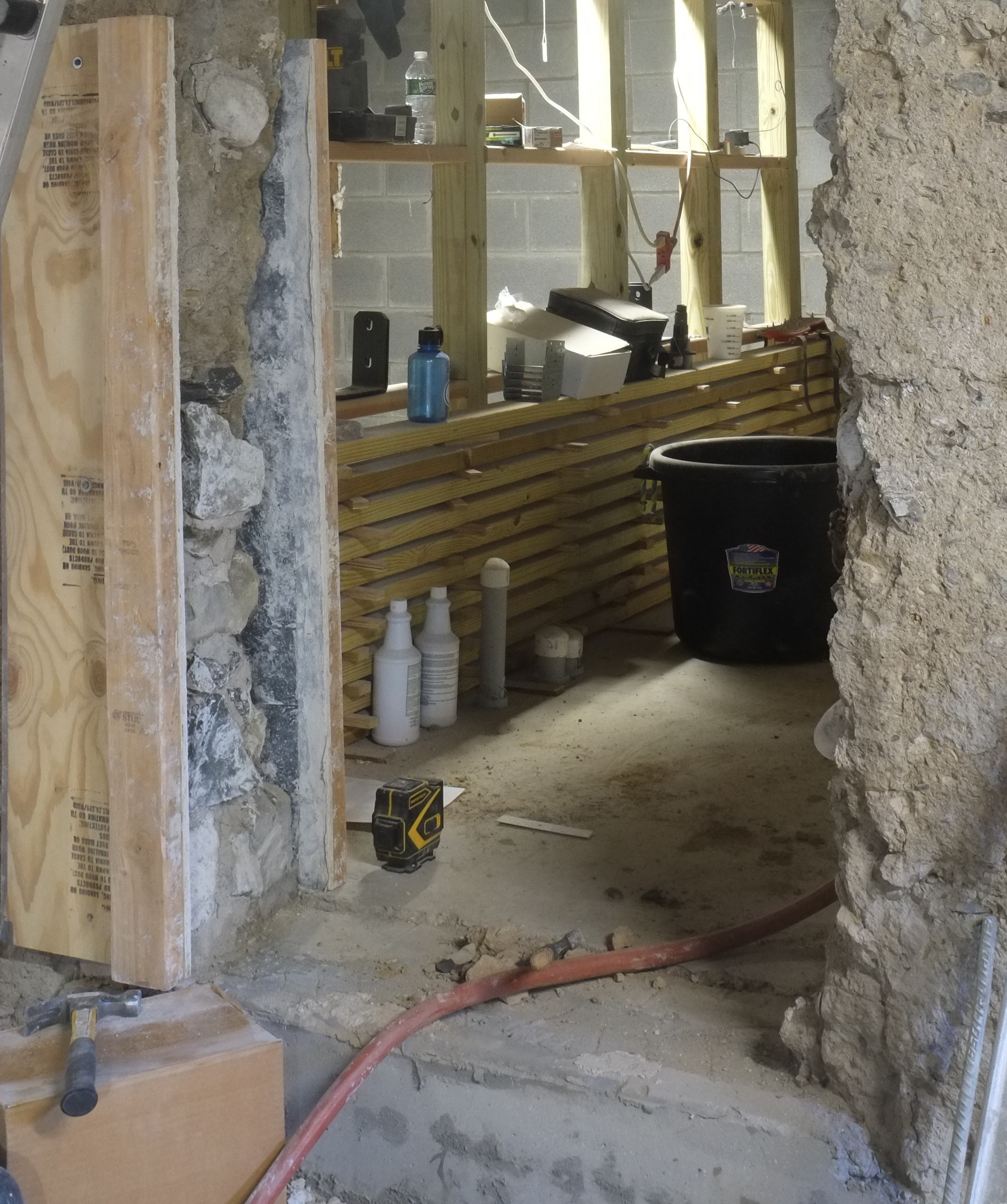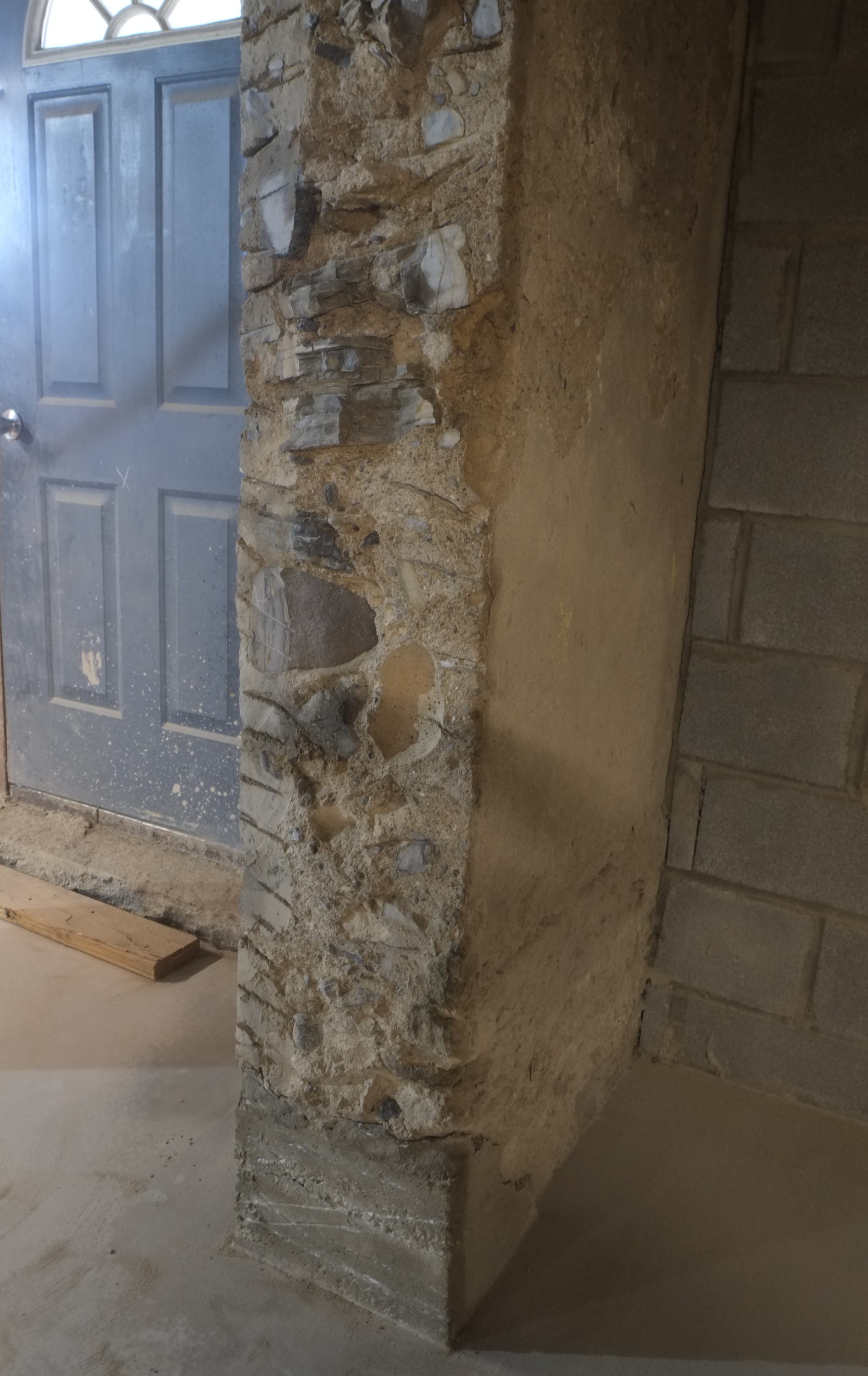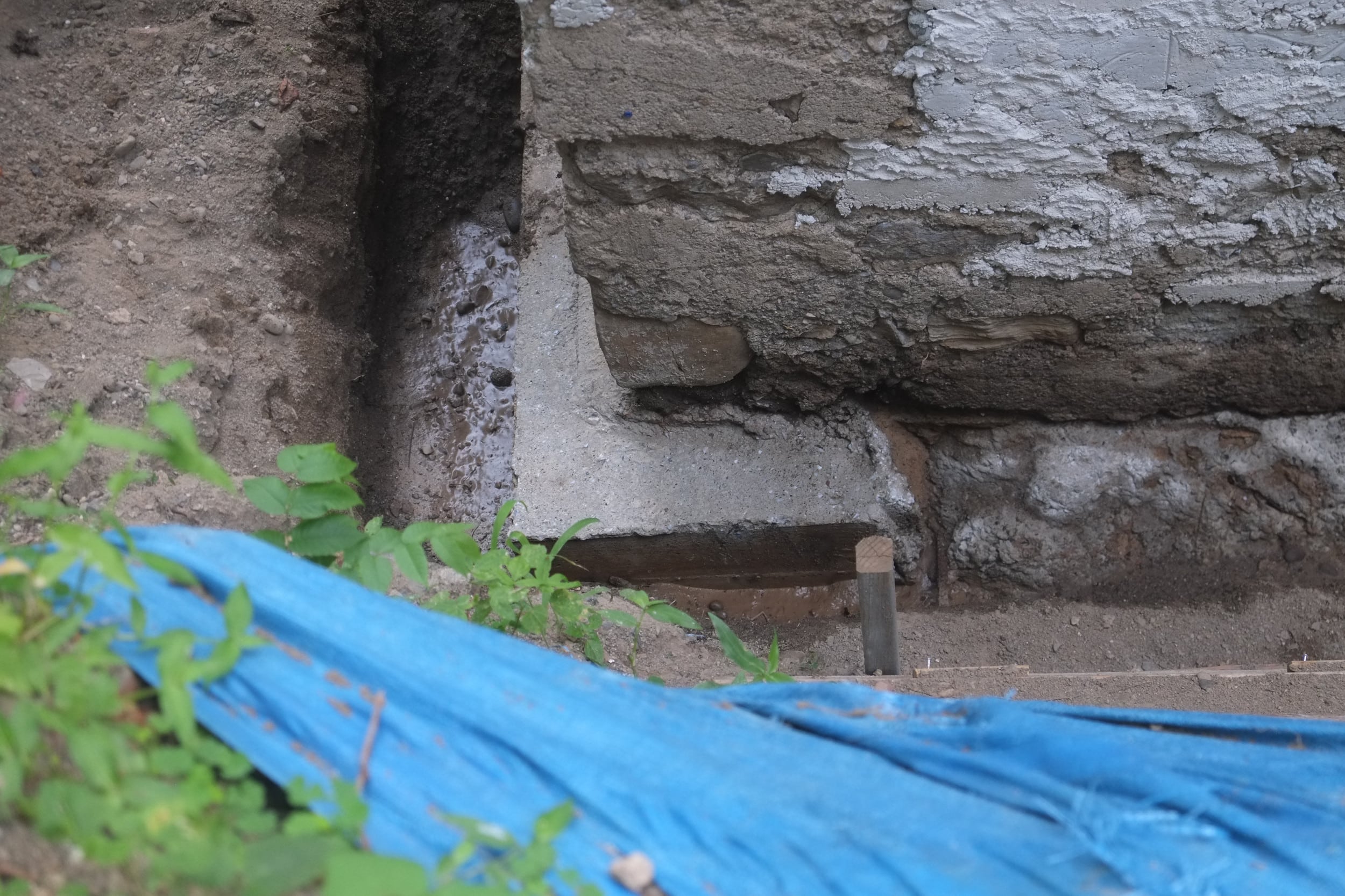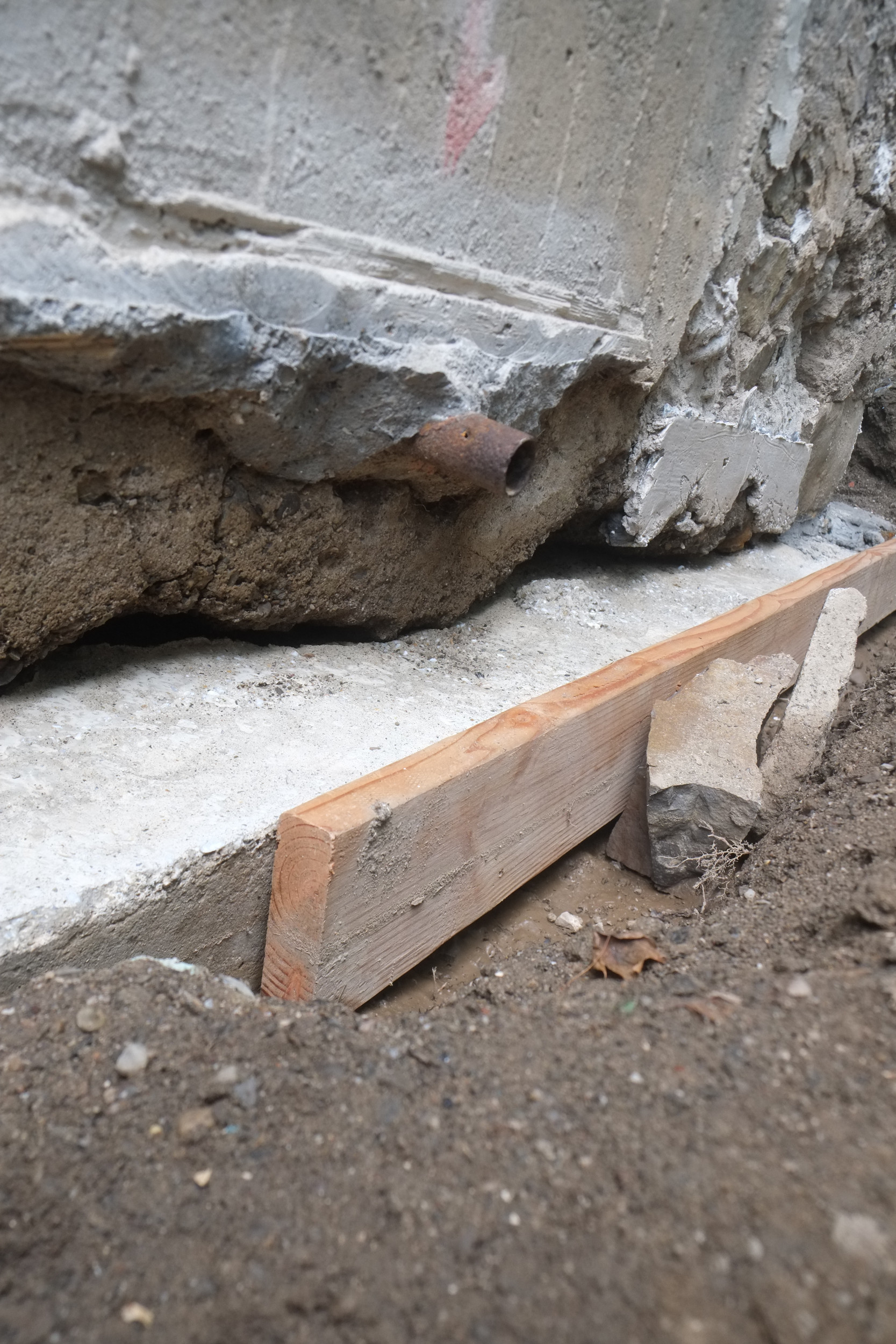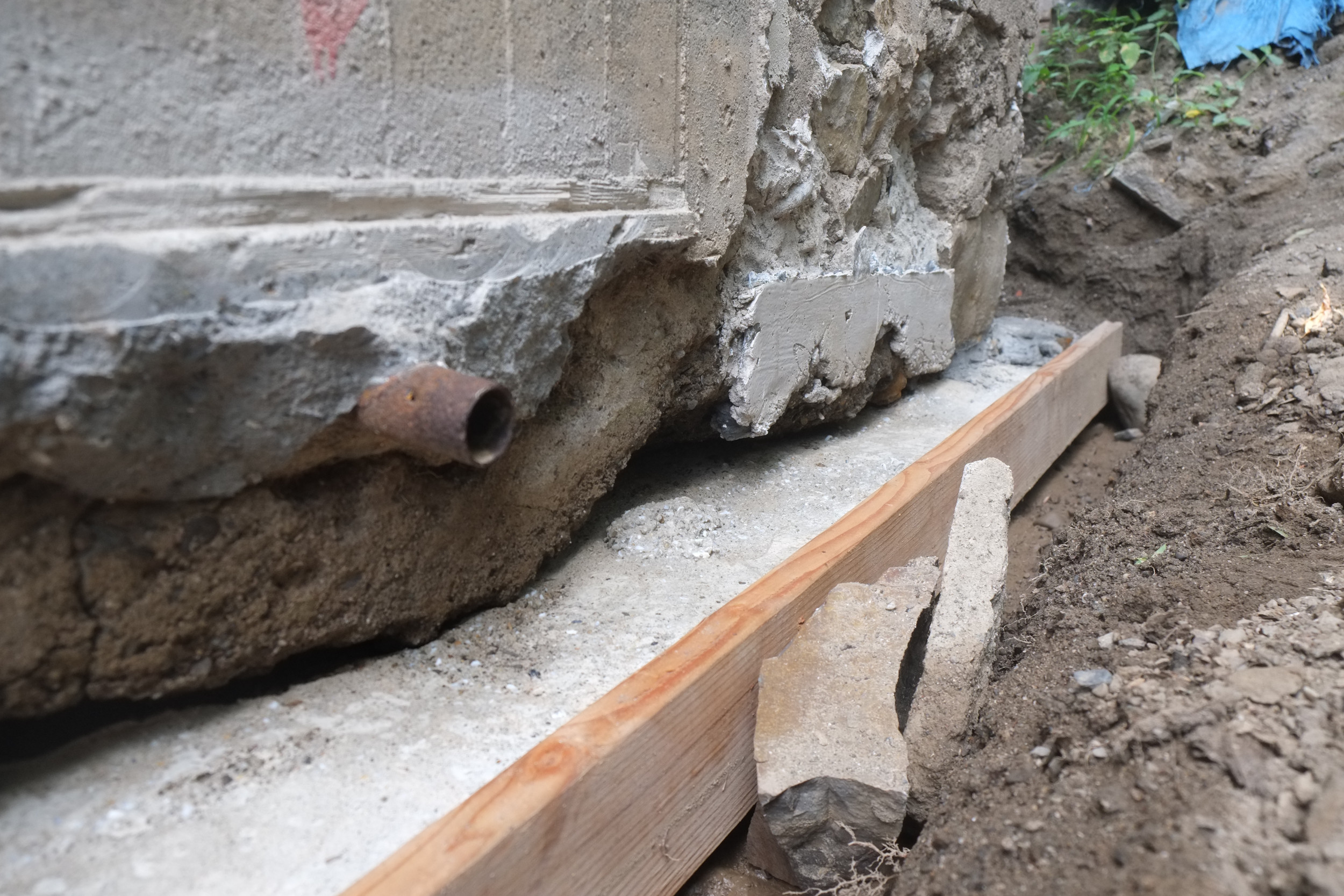 One thing that might cause a problem is around the corner we have the old cast iron sewer pipe and it seems to be right in the way of where we want the foundation drain to be. When the plumbers removed a section of this a few years ago the pipe wall was about 1/2″ thick so that will be a challenge to cut off.