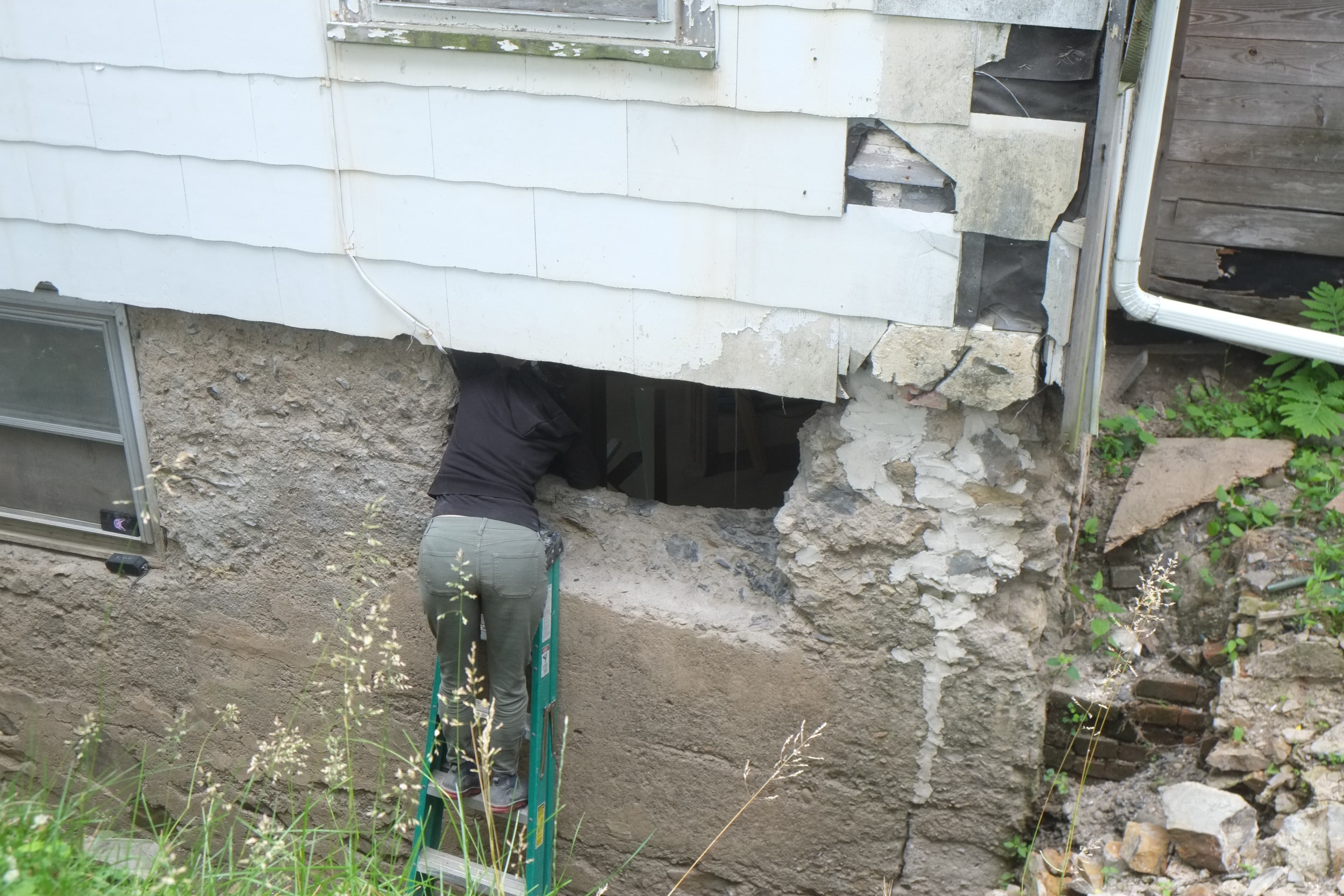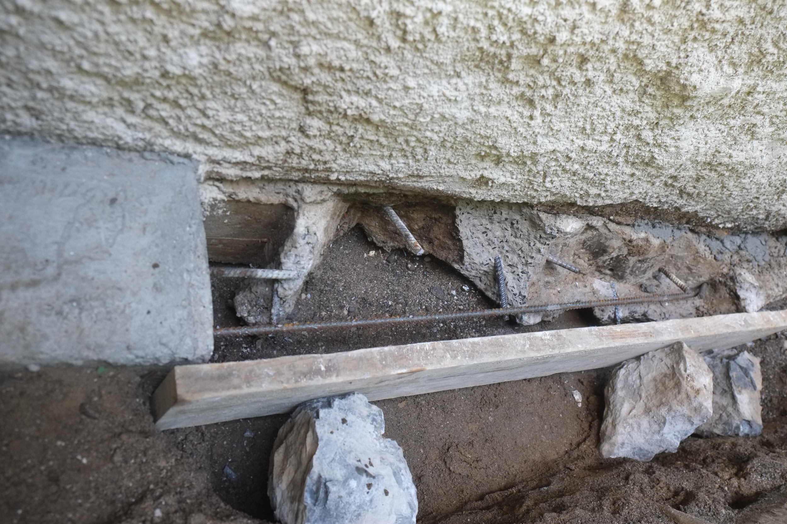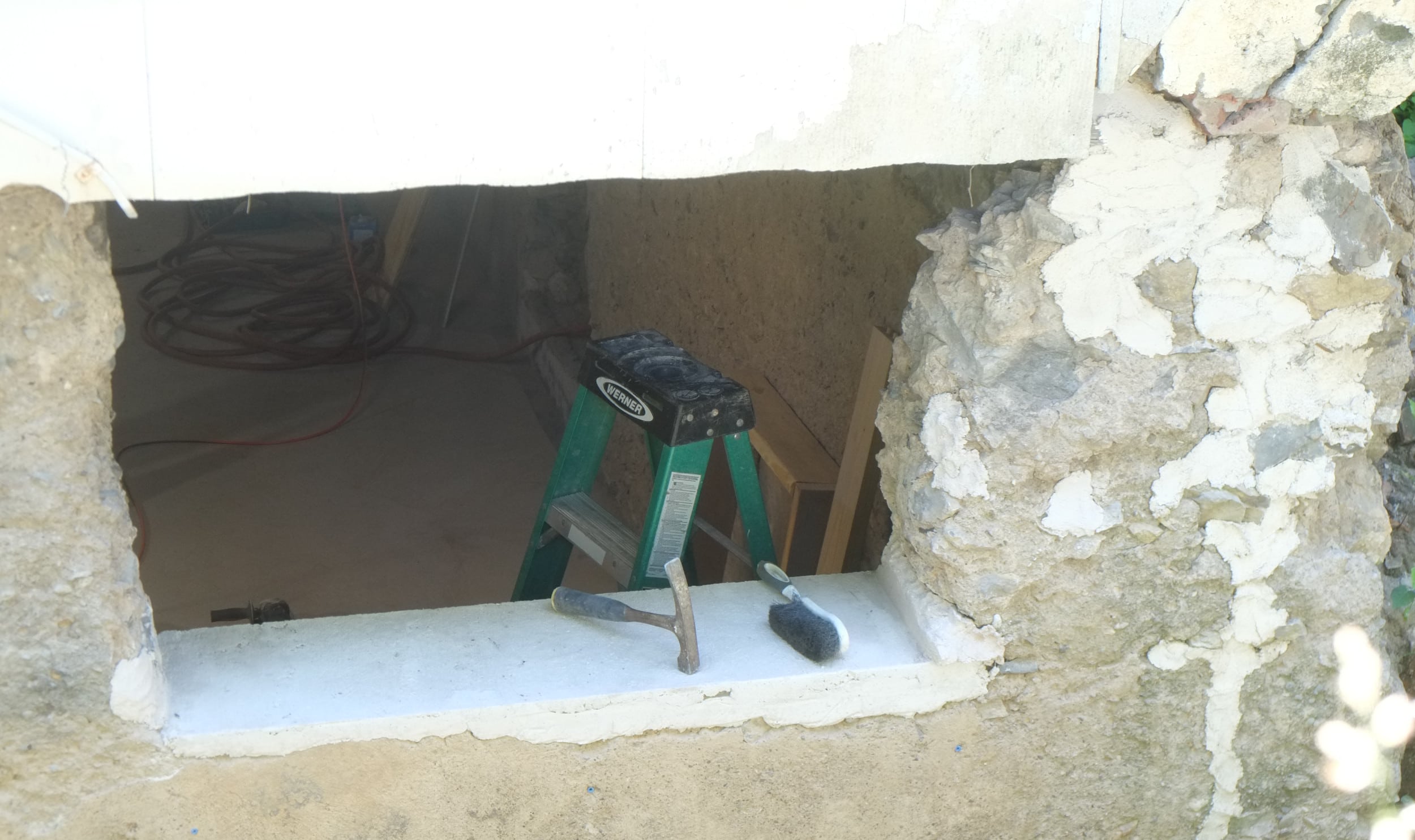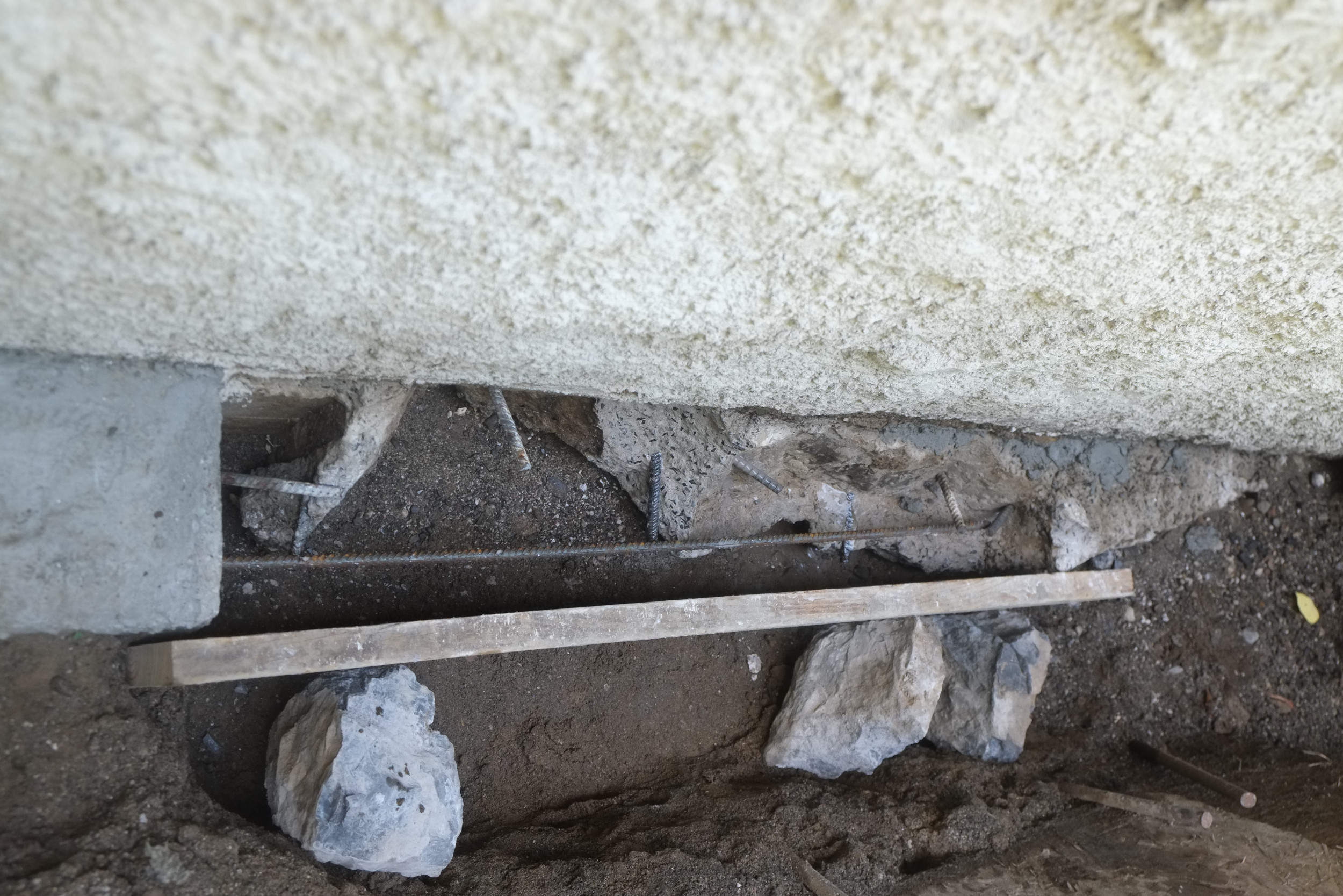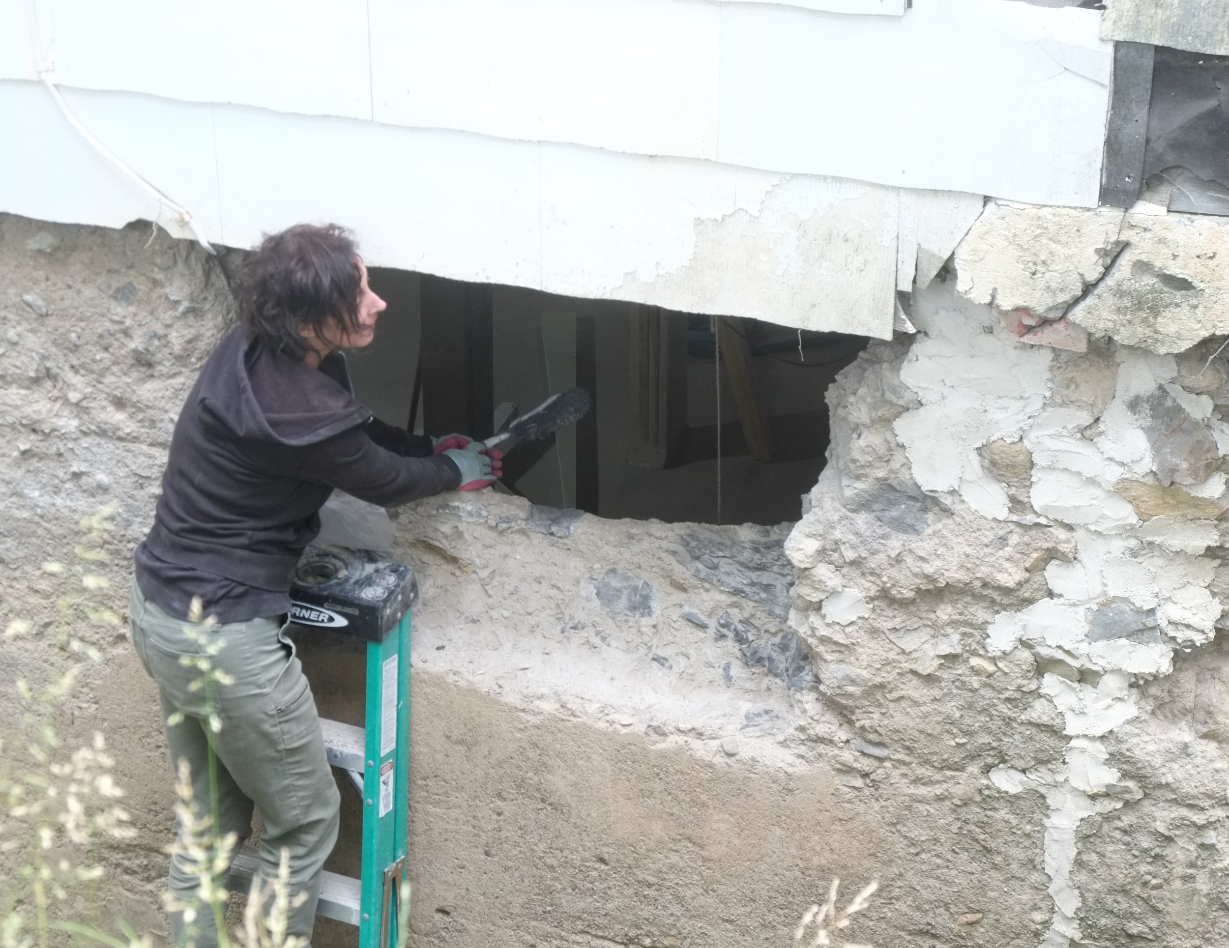 One thing that might cause a problem is around the corner we have the old cast iron sewer pipe and it seems to be right in the way of where we want the foundation drain to be. When the plumbers removed a section of this a few years ago the pipe wall was about 1/2″ thick so that will be a challenge to cut off.