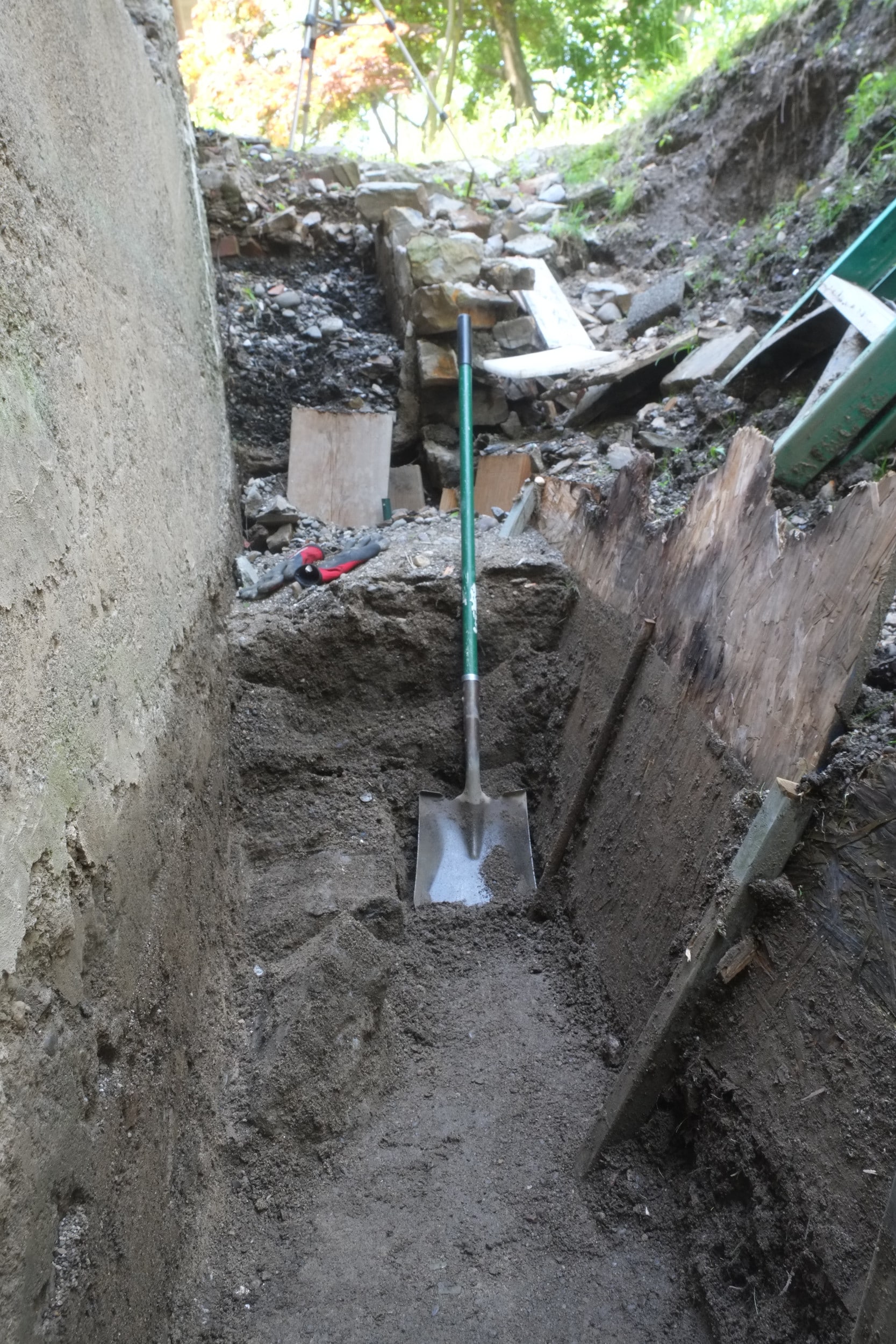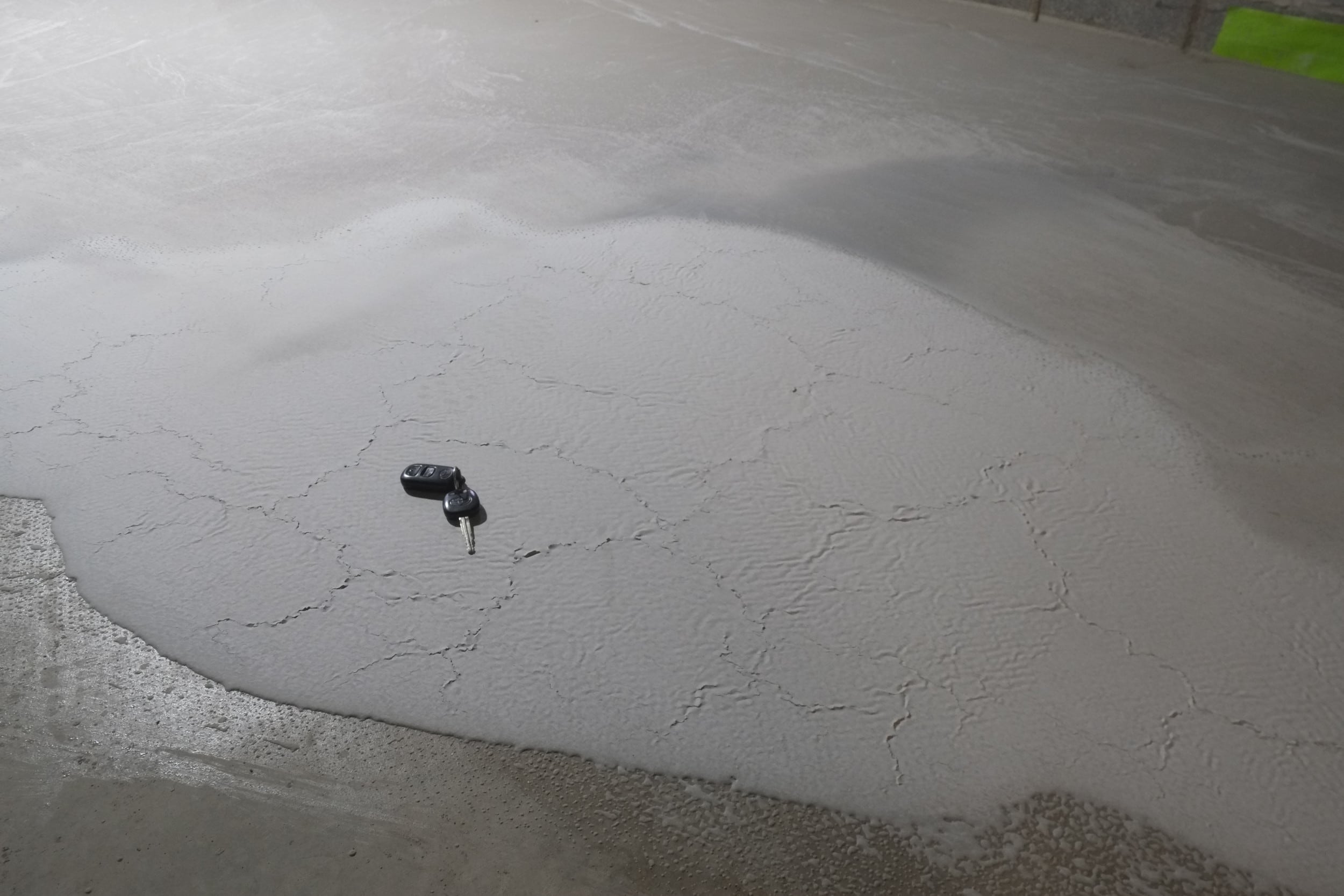 - Spiked shoes which allow you to walk over the poured compound without messing it up. Super slippery though so you have to tread lightly.