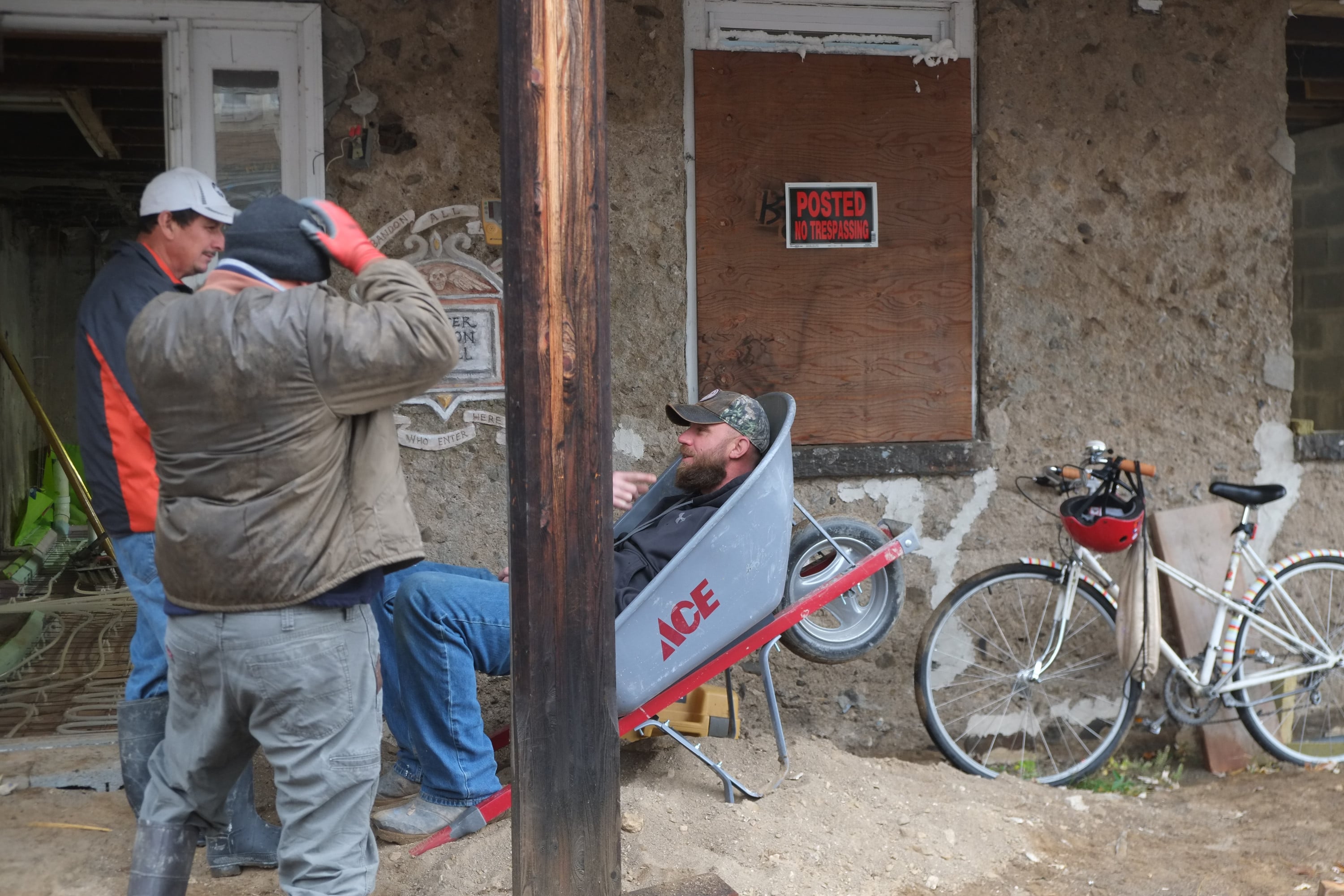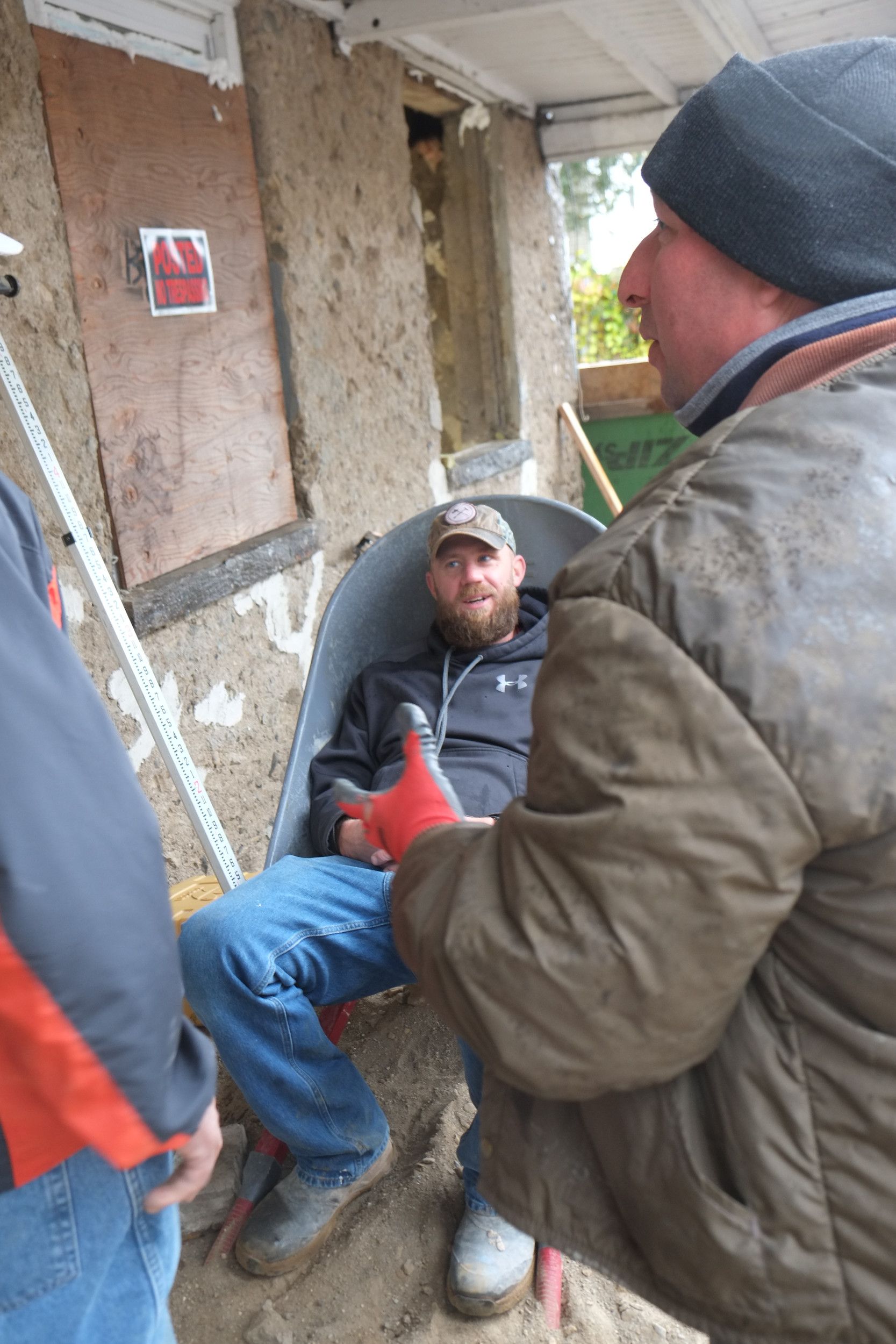 This is the crew, I didn’t catch all their names but pictured (in no order) is Al, Anthony and Pat, and I have to credit Pat with the “Adirondack wheel barrow chair”, it looks really, really comfortable and it’s portable!