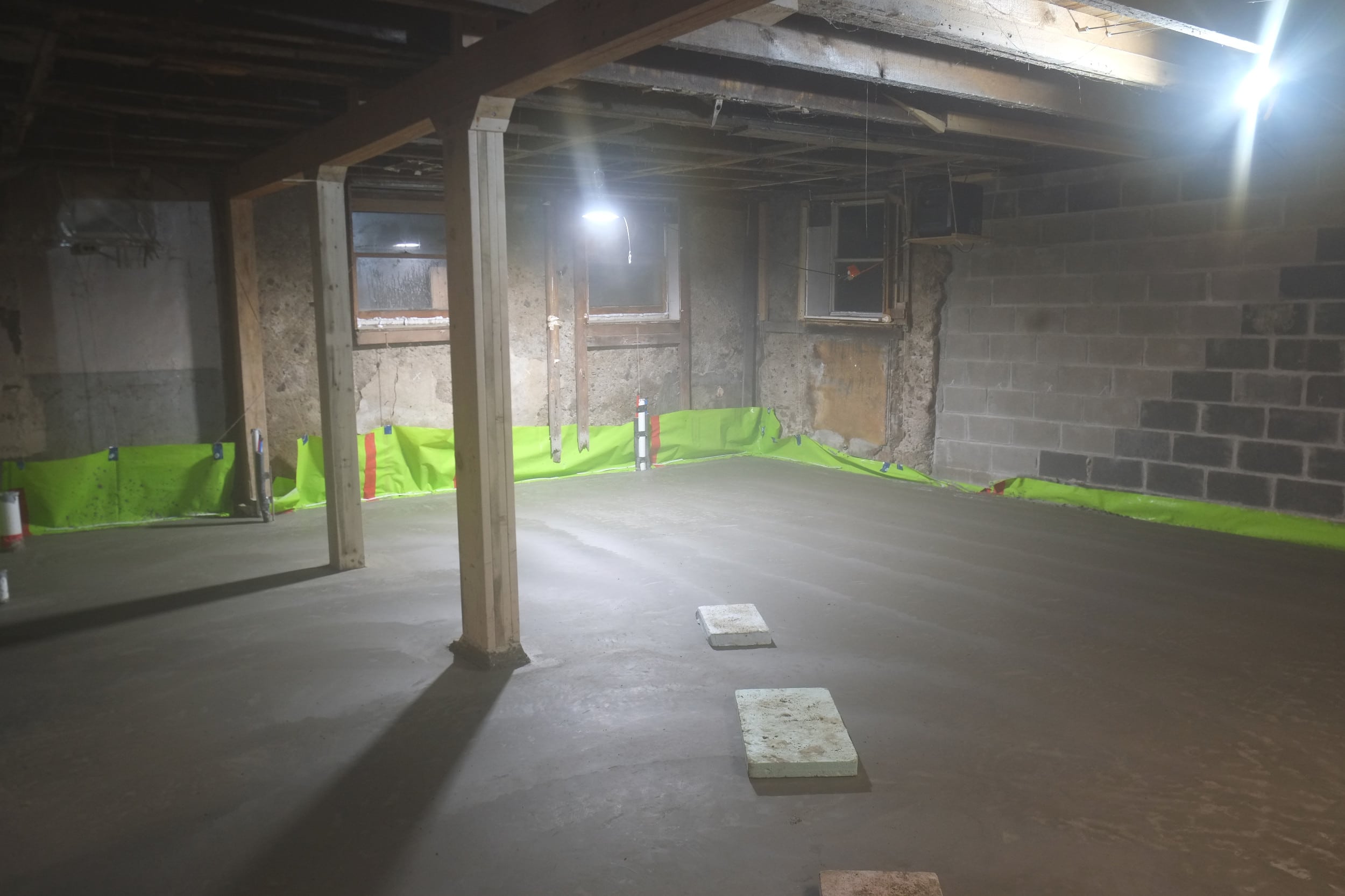 In about a month, when the concrete is fully cured, we will apply a coat of epoxy, probably colored, to add some protection and to smooth out any imperfections, but this is only if we can warm up the area to about 50° which is doubtful. Maybe we can install the rest of the radiant heating system, that would be cosy 🙂