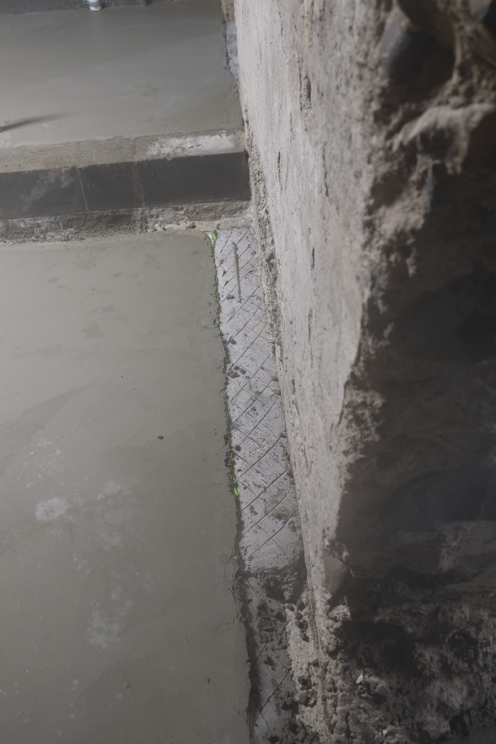 After it had cured we noticed that they hadn’t gone all the way to the walls, odd I thought but we patched that up. I then began to notice that some areas seemed uneven so we took some random measurements and found a height deviation of 1 & 3/8″ (later revised to 1 & 1/18″).